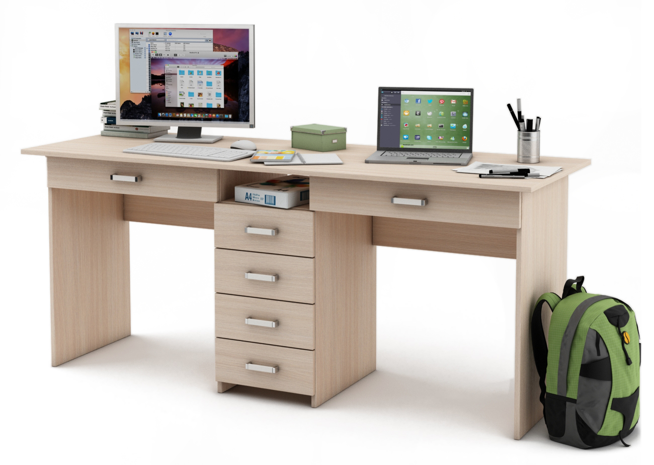 Стол обеспечит рабочими местами сразу двух человек и будет отличным выбором как для небольшого офиса, так и для домашнего интерьера. Стол позволяет вместить все необходимое, при этом не мешая рабочему процессу.