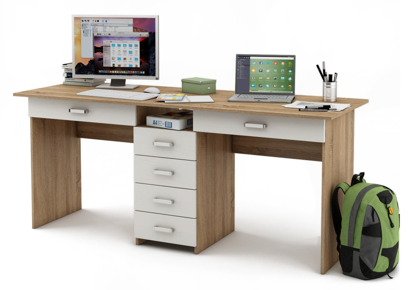 Отзывы о Столплит Письменный стол с ящиками Лайт 11Я для двоих Дуб Сонома, Белый