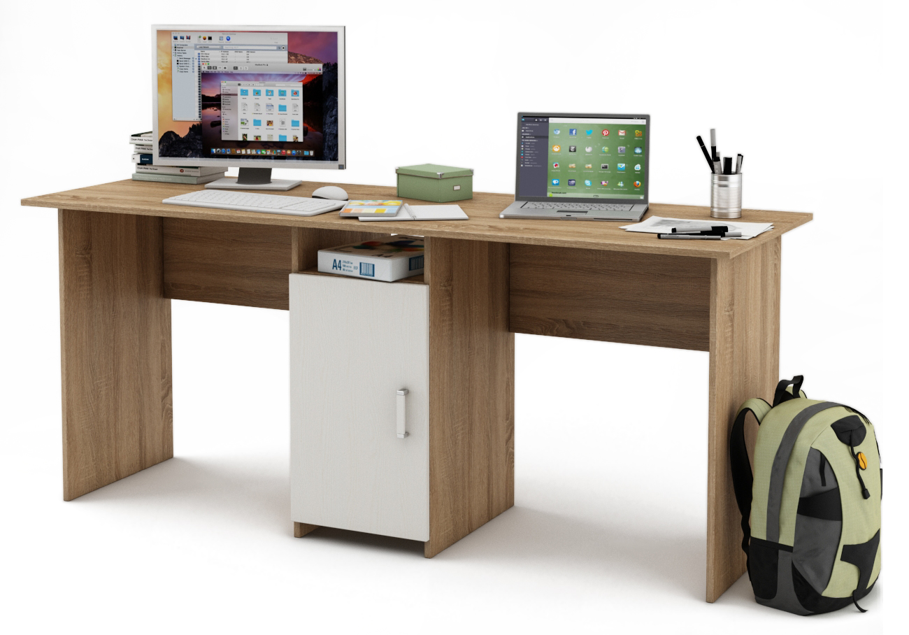 Стол обеспечит рабочими местами сразу двух человек и будет отличным выбором как для небольшого офиса, так и для домашнего интерьера.
