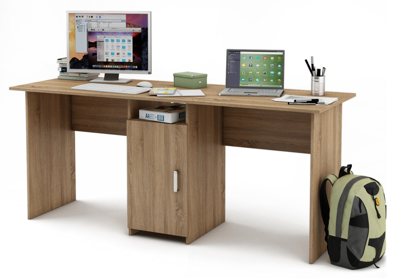 Стол обеспечит рабочими местами сразу двух человек и будет отличным выбором как для небольшого офиса, так и для домашнего интерьера.