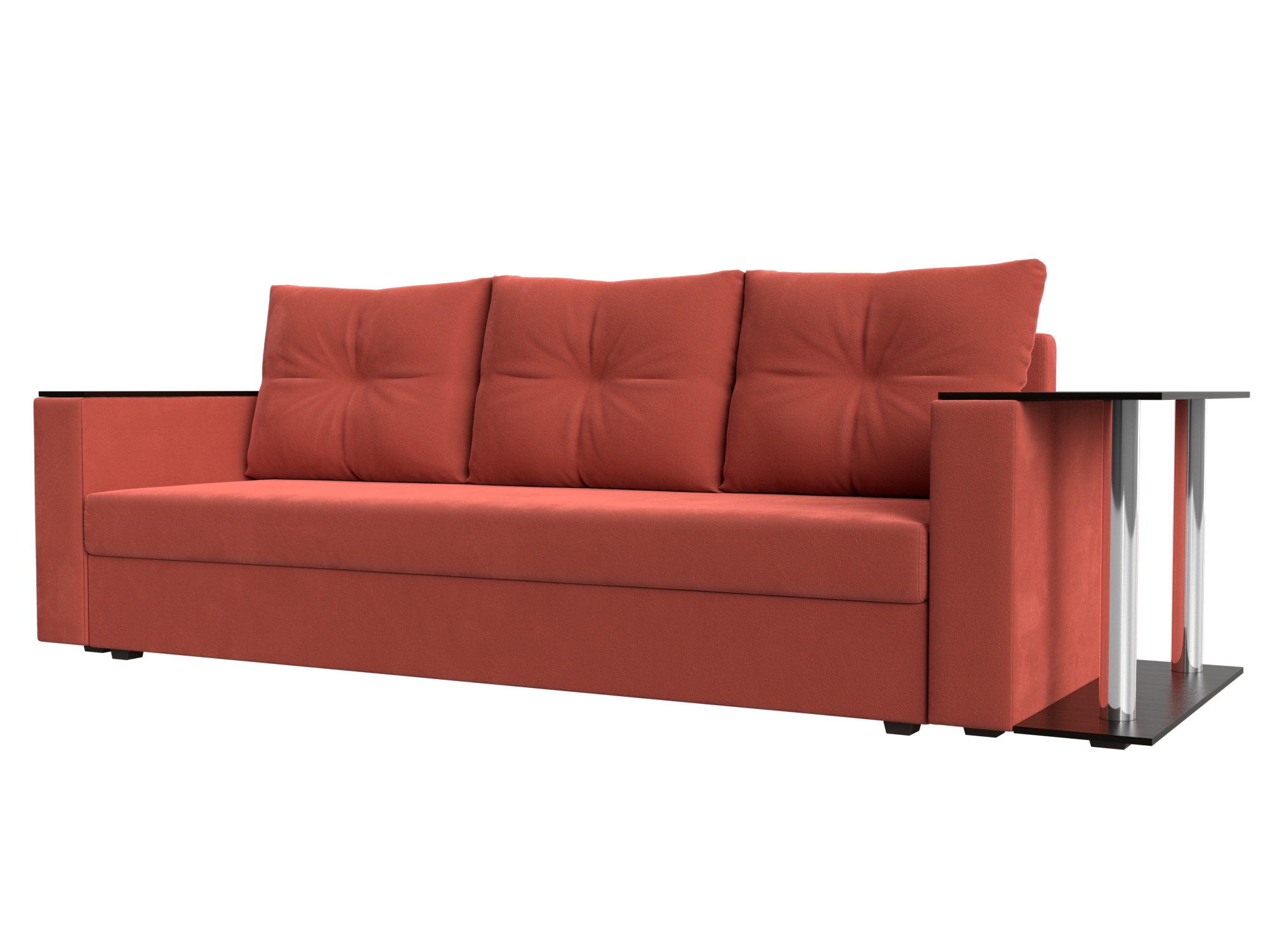 Отзывы о Столплит Диван прямой Атланта со столом справа, микровельвет Коралловый