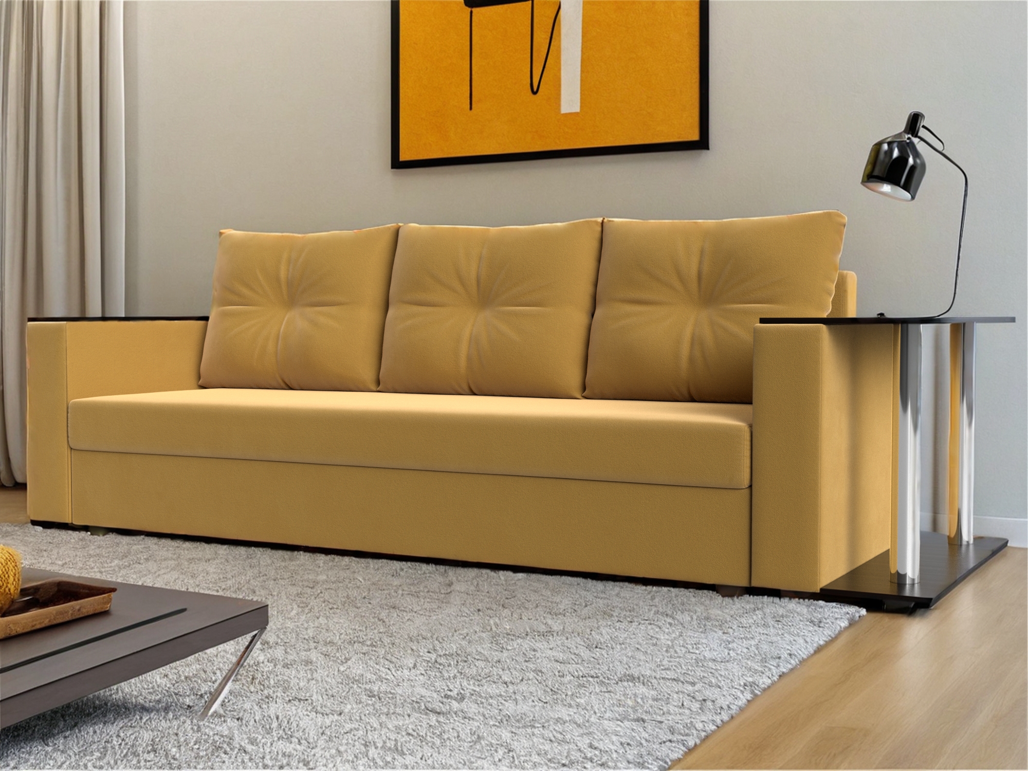 Отзывы о Столплит Диван прямой Атланта со столом справа, микровельвет Желтый