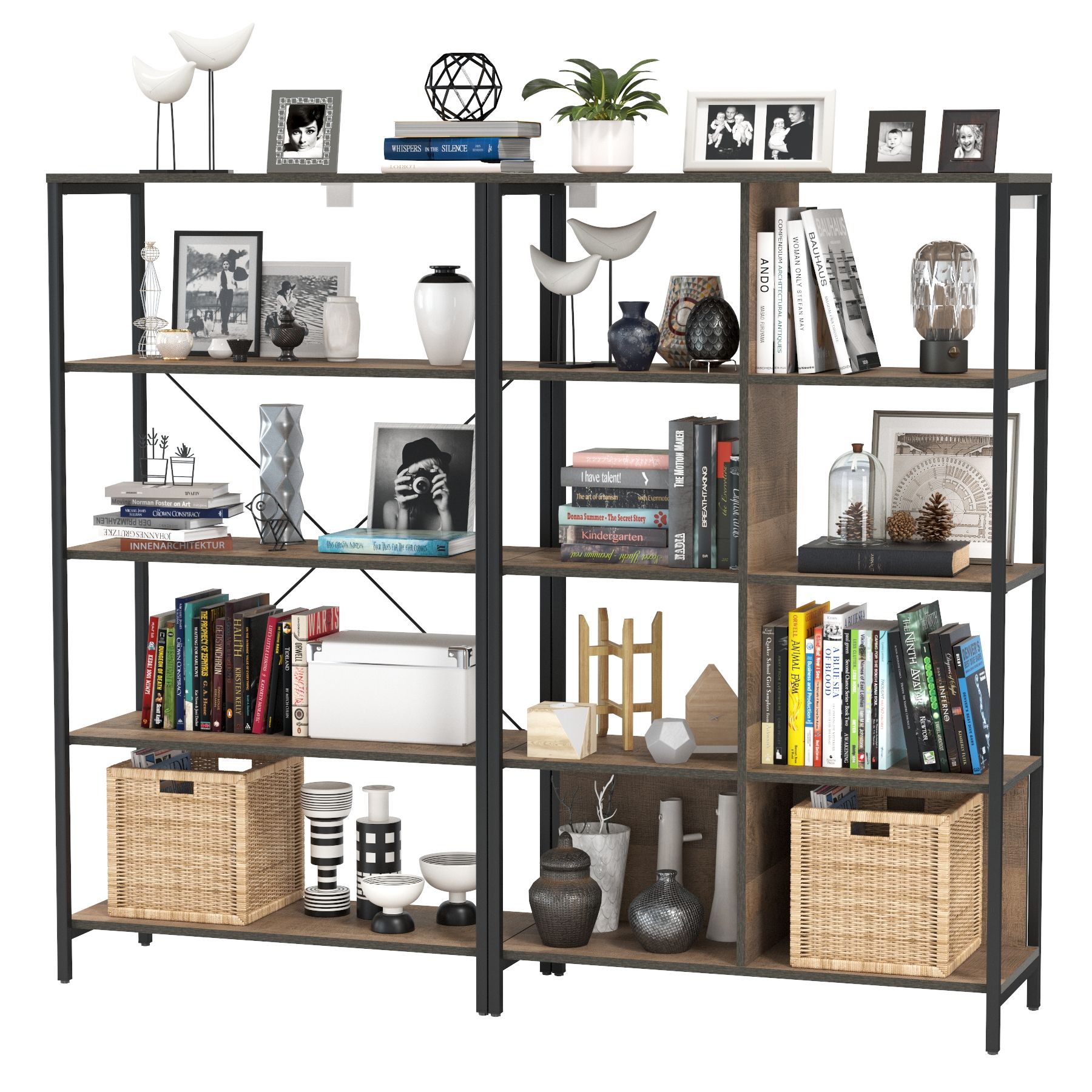 Брутальный декор и контрастная кромка, как и лицевая фурнитура придаёт мебели индустриальную эстетику. Комплектация состоит из двух стеллажей Трувор 13.151.01 и Трувор 13.151.02. Первый тип стеллажа с 4 полками с возможность доступа с любой стороны. Использование крестовых металлических стяжек вместо задней стенки делает конструкцию лёгкой, воздушной и устойчивой к боковым нагрузкам. Другой стеллаж с восемью полками, верхние 6 с возможность доступа с любой стороны. Нижняя ниша имеют заднюю панель. Металлические стойки с регулируемыми опорами делают этот стеллаж надёжным, аутентичнымй и функциональным. Выполнена мебель из ламинированной ДСП 16 мм и металлических стоевых, торцы окромлены ПХВ плёнкой 0,4 мм. В производстве мебели использована современная фурнитура, отличающаяся высокой надёжностью и долговечностью. Поставляется в разобранном виде в надёжной упаковке, с комплектом сборочной фурнитуры и инструкцией по сборке.