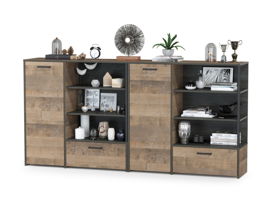 Брутальный декор и контрастная кромка, как и лицевая фурнитура придаёт мебели индустриальную эстетику. Вместительная сиситема хранения состоящая из двух комодов Трувор 13.307.01. Каждый вместительный и аккуратный комод оснащен 3 выдвижными ящиками и открытой нишей сверху. Направляющие выдвижных ящиков скрытого монтажа оснащены доводчиками, что обеспечивают повышенный комфорт и надёжность. На нижних кромках опор комода предусмотрены пластиковые подпятники для защиты поверхности пола от механических повреждений. Металлические элементы делают эту мебель надёжной, аутентичной и функциональной. Выполнена мебель из ламинированной ДСП 16 мм и металлических элементов, торцы окромлены ПХВ плёнкой 0,4 мм. В производстве мебели использована современная фурнитура, отличающаяся высокой надёжностью и долговечностью. Поставляется в разобранном виде в надёжной упаковке, с комплектом сборочной фурнитуры и инструкцией по сборке.