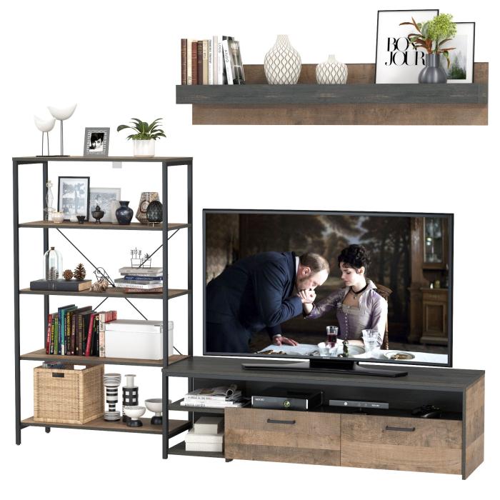 Тумба под ТВ с полкой и открытым стеллажом Трувор - современная и практичная мебель в индустриальном стиле лофт.