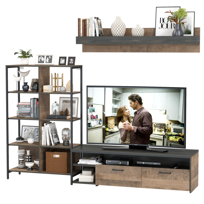 Тумба для ТВ и аппаратуры со стеллажом 13.151.02 и навесной полкой Трувор - современная и практичная мебель в индустриальном стиле лофт.