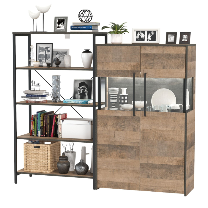 Комод с витриной с подсветкой и открытый стеллаж Трувор - современная и практичная мебель в индустриальном стиле лофт.