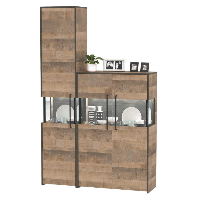 Шкаф-пенал Трувор 13.205 с витриной с подсветкой и комод-витрина с подсветкой Трувор - современная и практичная мебель в индустриальном стиле лофт.