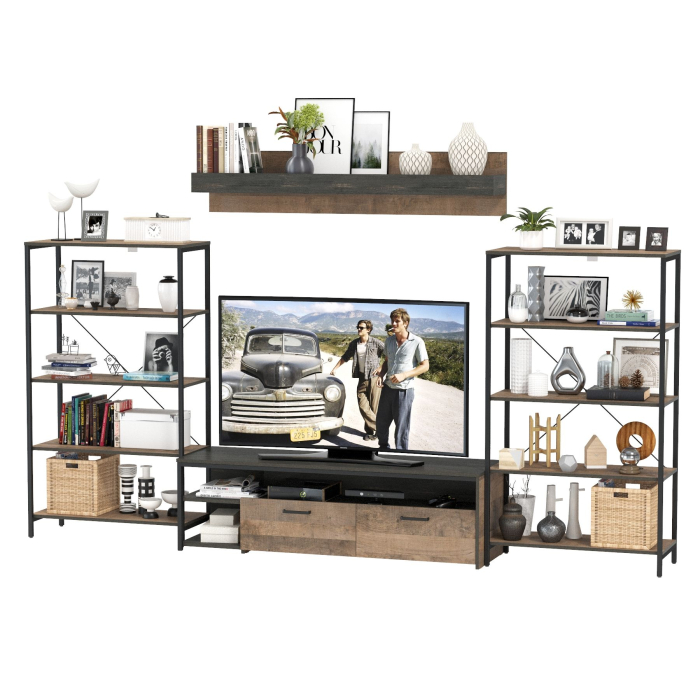 Брутальный декор и контрастная кромка, как и лицевая фурнитура придаёт мебели индустриальную эстетику. Комплектация состоит из тумбы под ТВ Трувор 13.70, полки навесной Трувор 15.60 и двух стеллажей Трувор 13.151.01. Тумба Трувор 13.70 оснащена широкой нишей сверху и 2 выдвижными ящиками и небольшой нишей снизу. Столешница тумбы имеет по центру кабель-канал, что значительно упрощает подключение техники и проблемы с проводами. Направляющие выдвижных ящиков скрытого монтажа оснащены доводчиками, что обеспечивают повышенный комфорт и надёжность. На нижних кромках опор тумбы предусмотрены пластиковые подпятники для защиты поверхности пола от механических повреждений. Тумба под ТВ Трувор 13.70 имеет универсальную сборку, что позволяет расположить ящики как справа, так и слева. Металлические элементы делают эту мебель надёжной, аутентичной и функциональной. Классическая навесная открытая полка с задней панелью расположена над тумбой. Полка располагается по центру панели и оборудована бортиком. Полку Трувор 15.60 можно использовать как книжную, а также для размещения элементов декора, поделок и фоторгафий. Полка имеет с обратной стороны панели скрытые крепленния. Максимальная нагрузка на полку составляет 3 кг. Устойчивый стеллаж Трувор 13.151.01 с 4 полками с возможность доступа с любой стороны. В комп. 2 стеллажа. Металлические стойки с регулируемыми опорами делают этот стеллаж надёжным, аутентичнымй и функциональным. Использование крестовых металлических стяжек вместо задней стенки делает конструкцию лёгкой, воздушной и устойчивой к боковым нагрузкам. Выполнена мебель из ламинированной ДСП 16 мм и металлических элементов, торцы окромлены ПХВ плёнкой 0,4 мм. В производстве мебели использована современная фурнитура, отличающаяся высокой надёжностью и долговечностью. Поставляется в разобранном виде в надёжной упаковке, с комплектом сборочной фурнитуры и инструкцией по сборке.