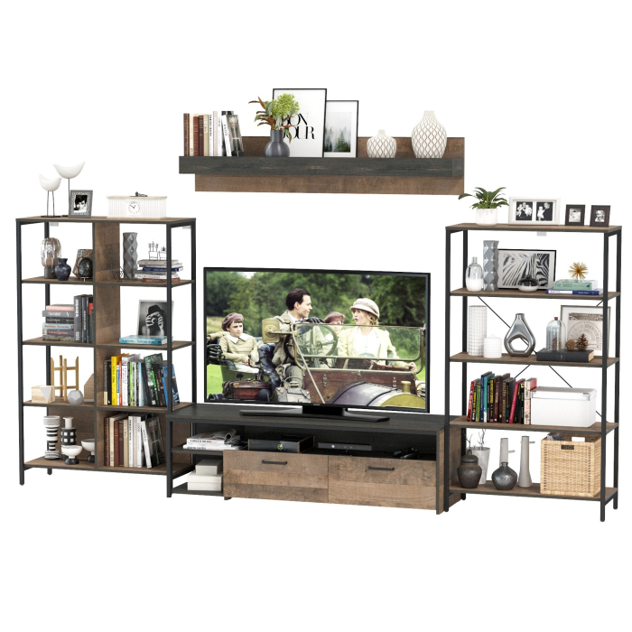 Брутальный декор и контрастная кромка, как и лицевая фурнитура придаёт мебели индустриальную эстетику. Комплектация состоит из тумбы под ТВ Трувор 13.70, полки навесной Трувор 15.60, стеллажа Трувор 13.151.01 и стеллажа Трувор 13.151.02. Тумба Трувор 13.70 оснащена широкой нишей сверху и 2 выдвижными ящиками и небольшой нишей снизу. Столешница тумбы имеет по центру кабель-канал, что значительно упрощает подключение техники и проблемы с проводами. Направляющие выдвижных ящиков скрытого монтажа оснащены доводчиками, что обеспечивают повышенный комфорт и надёжность. На нижних кромках опор тумбы предусмотрены пластиковые подпятники для защиты поверхности пола от механических повреждений. Тумба под ТВ Трувор 13.70 имеет универсальную сборку, что позволяет расположить ящики как справа, так и слева. Металлические элементы делают эту мебель надёжной, аутентичной и функциональной. Классическая навесная открытая полка с задней панелью расположена над тумбой. Полка располагается по центру панели и оборудована бортиком. Полку Трувор 15.60 можно использовать как книжную, а также для размещения элементов декора, поделок и фоторгафий. Полка имеет с обратной стороны панели скрытые крепленния. Максимальная нагрузка на полку составляет 3 кг. Устойчивый стеллаж Трувор 13.151.01 с 4 полками с возможность доступа с любой стороны. Использование крестовых металлических стяжек вместо задней стенки делает конструкцию лёгкой, воздушной и устойчивой к боковым нагрузкам. Стеллаж Трувор 13.151.02 с 8 полками, верхние 6 с возможность доступа с любой стороны. Нижняя ниша имеют заднюю панель. Металлические стойки с регулируемыми опорами делают этот стеллаж надёжным, аутентичнымй и функциональным. Выполнена мебель из ламинированной ДСП 16 мм и металлических элементов, торцы окромлены ПХВ плёнкой 0,4 мм. В производстве мебели использована современная фурнитура, отличающаяся высокой надёжностью и долговечностью. Поставляется в разобранном виде в надёжной упаковке, с комплектом сборочной фурнитуры и инструкцией по сборке.