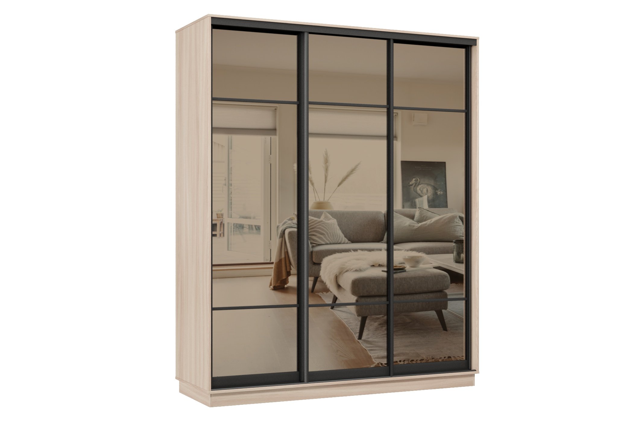 Отзывы о Столплит Шкаф-купе Премьер 22 (11ЗБ;11ЗБ;11ЗБ) фасады зеркало бронза/трёхдверный/Профиль чёрный муар Ясень шимо светлый