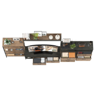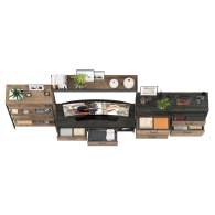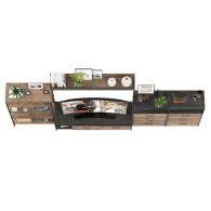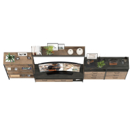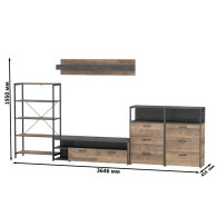 Брутальный декор и контрастная кромка, как и лицевая фурнитура придаёт мебели индустриальную эстетику. Комплектация состоит из тумбы под ТВ Трувор 13.70, полки навесной Трувор 15.60, стеллажа Трувор 13.151.01 и двух комодов с ящиками Трувор 13.307.02. Тумба Трувор 13.70 оснащена широкой нишей сверху и 2 выдвижными ящиками и небольшой нишей снизу. Столешница тумбы имеет по центру кабель-канал, что значительно упрощает подключение техники и проблемы с проводами. Тумба под ТВ Трувор 13.70 имеет универсальную сборку, что позволяет расположить ящики как справа, так и слева. Классическая навесная открытая полка с задней панелью расположена над тумбой. Полка располагается по центру панели и оборудована бортиком. Полку Трувор 15.60 можно использовать как книжную, а также для размещения элементов декора, поделок и фоторгафий. Полка имеет с обратной стороны панели скрытые крепленния. Максимальная нагрузка на полку составляет 3 кг. Аккуратный комод оснащен 3 выдвижными ящиками и открытой нишей сверху. В комп. 2 ед.. Устойчивый стеллаж Трувор 13.151.01 с 4 полками с возможность доступа с любой стороны. Металлические стойки с регулируемыми опорами. Использование крестовых металлических стяжек вместо задней стенки делает конструкцию лёгкой, воздушной и устойчивой к боковым нагрузкам. Направляющие выдвижных ящиков скрытого монтажа оснащены доводчиками, что обеспечивают повышенный комфорт и надёжность. На нижних кромках опор предусмотрены пластиковые подпятники для защиты поверхности пола от механических повреждений. Металлические элементы делают эту мебель надёжной, аутентичной и функциональной. Выполнена мебель из ламинированной ДСП 16 мм и металлических элементов, торцы окромлены ПХВ плёнкой 0,4 мм. В производстве мебели использована современная фурнитура, отличающаяся высокой надёжностью и долговечностью. Поставляется в разобранном виде в надёжной упаковке, с комплектом сборочной фурнитуры и инструкцией по сборке.