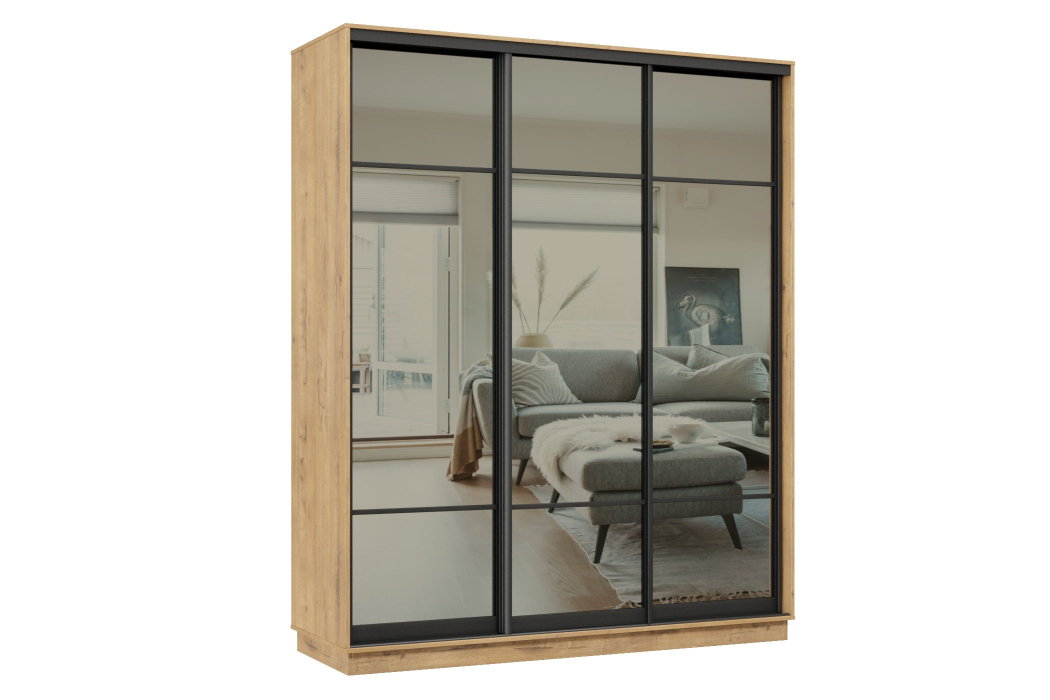Отзывы о Столплит Шкаф-купе Премьер 24 (11ЗГ;11ЗГ;11ЗГ) фасады зеркало графит/трёхдверный/Профиль чёрный муар Бунратти