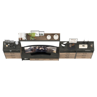 Брутальный декор и контрастная кромка, как и лицевая фурнитура придаёт мебели индустриальную эстетику. Комплектация состоит из тумбы под ТВ Трувор 13.70, полки навесной Трувор 15.60 и трех комодов с ящиками Трувор 13.307.02. Тумба Трувор 13.70 оснащена широкой нишей сверху и 2 выдвижными ящиками и небольшой нишей снизу. Столешница тумбы имеет по центру кабель-канал, что значительно упрощает подключение техники и проблемы с проводами. Тумба под ТВ Трувор 13.70 имеет универсальную сборку, что позволяет расположить ящики как справа, так и слева. Классическая навесная открытая полка с задней панелью расположена над тумбой. Полка располагается по центру панели и оборудована бортиком. Полку Трувор 15.60 можно использовать как книжную, а также для размещения элементов декора, поделок и фоторгафий. Полка имеет с обратной стороны панели скрытые крепленния. Максимальная нагрузка на полку составляет 3 кг. Аккуратный комод оснащен 3 выдвижными ящиками и открытой нишей сверху. В комп. 3 ед.. Направляющие выдвижных ящиков скрытого монтажа оснащены доводчиками, что обеспечивают повышенный комфорт и надёжность. На нижних кромках опор предусмотрены пластиковые подпятники для защиты поверхности пола от механических повреждений. Металлические элементы делают эту мебель надёжной, аутентичной и функциональной. Выполнена мебель из ламинированной ДСП 16 мм и металлических элементов, торцы окромлены ПХВ плёнкой 0,4 мм. В производстве мебели использована современная фурнитура, отличающаяся высокой надёжностью и долговечностью. Поставляется в разобранном виде в надёжной упаковке, с комплектом сборочной фурнитуры и инструкцией по сборке.