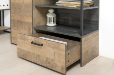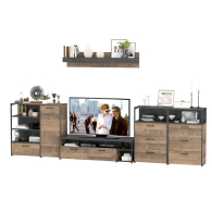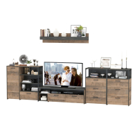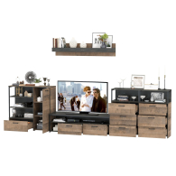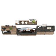 Брутальный декор и контрастная кромка, как и лицевая фурнитура придаёт мебели индустриальную эстетику. Комплектация состоит из тумбы под ТВ Трувор 13.70, полки навесной Трувор 15.60 и комода с дверкой Трувор 13.307.01 и двух комодов с ящиками Трувор 13.307.02. Тумба Трувор 13.70 оснащена широкой нишей сверху и 2 выдвижными ящиками и небольшой нишей снизу. Столешница тумбы имеет по центру кабель-канал, что значительно упрощает подключение техники и проблемы с проводами. Тумба под ТВ Трувор 13.70 имеет универсальную сборку, что позволяет расположить ящики как справа, так и слева. Классическая навесная открытая полка с задней панелью расположена над тумбой. Полка располагается по центру панели и оборудована бортиком. Полку Трувор 15.60 можно использовать как книжную, а также для размещения элементов декора, поделок и фоторгафий. Полка имеет с обратной стороны панели скрытые крепленния. Максимальная нагрузка на полку составляет 3 кг. Вместительный комод оснащен 2 полками за распашной дверкой с одной стороны и 3 открытыми нишами и выдвижным ящиком снизу с другой. Комод Трувор 13.307.01 имеет универсальную сборку, что позволяет расположить дверку как справа, так и слева. Аккуратный комод оснащен 3 выдвижными ящиками и открытой нишей сверху. В комп. 2 ед.. Направляющие выдвижных ящиков скрытого монтажа и четырёхшарнирные петли дверки оснащены доводчиками, что обеспечивают повышенный комфорт и надёжность. На нижних кромках опор предусмотрены пластиковые подпятники для защиты поверхности пола от механических повреждений. Металлические элементы делают эту мебель надёжной, аутентичной и функциональной. Выполнена мебель из ламинированной ДСП 16 мм и металлических элементов, торцы окромлены ПХВ плёнкой 0,4 мм. В производстве мебели использована современная фурнитура, отличающаяся высокой надёжностью и долговечностью. Поставляется в разобранном виде в надёжной упаковке, с комплектом сборочной фурнитуры и инструкцией по сборке.