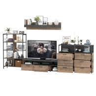 Брутальный декор и контрастная кромка, как и лицевая фурнитура придаёт мебели индустриальную эстетику. Комплектация состоит из тумбы под ТВ Трувор 13.70, полки навесной Трувор 15.60, стеллажа Трувор 13.151.02 и двух комодов с ящиками Трувор 13.307.02. Тумба Трувор 13.70 оснащена широкой нишей сверху и 2 выдвижными ящиками и небольшой нишей снизу. Столешница тумбы имеет по центру кабель-канал, что значительно упрощает подключение техники и проблемы с проводами. Тумба под ТВ Трувор 13.70 имеет универсальную сборку, что позволяет расположить ящики как справа, так и слева. Классическая навесная открытая полка с задней панелью расположена над тумбой. Полка располагается по центру панели и оборудована бортиком. Полку Трувор 15.60 можно использовать как книжную, а также для размещения элементов декора, поделок и фоторгафий. Полка имеет с обратной стороны панели скрытые крепленния. Максимальная нагрузка на полку составляет 3 кг. Аккуратный комод оснащен 3 выдвижными ящиками и открытой нишей сверху. В комп. 2 ед.. Стеллаж Трувор 13.151.02 с 8 полками, верхние 6 с возможность доступа с любой стороны. Нижняя ниша имеют заднюю панель. Металлические стойки с регулируемыми опорами. Направляющие выдвижных ящиков скрытого монтажа оснащены доводчиками, что обеспечивают повышенный комфорт и надёжность. На нижних кромках опор предусмотрены пластиковые подпятники для защиты поверхности пола от механических повреждений. Металлические элементы делают эту мебель надёжной, аутентичной и функциональной. Выполнена мебель из ламинированной ДСП 16 мм и металлических элементов, торцы окромлены ПХВ плёнкой 0,4 мм. В производстве мебели использована современная фурнитура, отличающаяся высокой надёжностью и долговечностью. Поставляется в разобранном виде в надёжной упаковке, с комплектом сборочной фурнитуры и инструкцией по сборке.