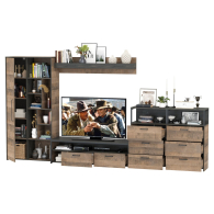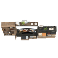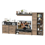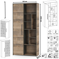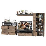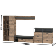 Брутальный декор и контрастная кромка, как и лицевая фурнитура придаёт мебели индустриальную эстетику. Комплектация состоит из тумбы под ТВ Трувор 13.70, полки навесной Трувор 15.60, двух комодов с ящиками Трувор 13.307.02 и шкафа-стеллажа Трувор 13.206. Тумба Трувор 13.70 оснащена широкой нишей сверху и 2 выдвижными ящиками и небольшой нишей снизу. Столешница тумбы имеет по центру кабель-канал, что значительно упрощает подключение техники и проблемы с проводами. Тумба под ТВ Трувор 13.70 имеет универсальную сборку, что позволяет расположить ящики как справа, так и слева. Классическая навесная открытая полка с задней панелью расположена над тумбой. Полка располагается по центру панели и оборудована бортиком. Полку Трувор 15.60 можно использовать как книжную, а также для размещения элементов декора, поделок и фоторгафий. Полка имеет с обратной стороны панели скрытые крепленния. Максимальная нагрузка на полку составляет 3 кг. Аккуратный комод оснащен 3 выдвижными ящиками и открытой нишей сверху. В комп. 2 ед.. Шкаф-стеллаж состоит из двух отделений - с одной стороны с дверкой, с другой с открытыми полками. За распашной дверкой расположены 4 полки, дверь оборудована широкой ручкой. Открытое отделение с открытыми имеет сверху и снизу большие ниши и по центру 6 ниш поменьше. Шкаф-стеллаж Трувор 13.206 имеет универсальную сборку, сторону открывания двери и ее расположение Вы определяете при сборке. Четырёхшарнирные петли двери оснащены доводчиками, что обеспечивают повышенный комфорт и надёжность. Направляющие выдвижных ящиков скрытого монтажа оснащены доводчиками, что обеспечивают повышенный комфорт и надёжность. На нижних кромках опор предусмотрены пластиковые подпятники для защиты поверхности пола от механических повреждений. Металлические элементы делают эту мебель надёжной, аутентичной и функциональной. Выполнена мебель из ламинированной ДСП 16 мм и металлических элементов, торцы окромлены ПХВ плёнкой 0,4 мм. В производстве мебели использована современная фурнитура, отличающаяся высокой надёжностью и долговечностью. Поставляется в разобранном виде в надёжной упаковке, с комплектом сборочной фурнитуры и инструкцией по сборке.