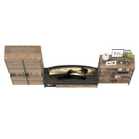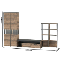 Брутальный декор и контрастная кромка, как и лицевая фурнитура придаёт мебели индустриальную эстетику. Комплектация состоит из тумбы под ТВ Трувор 13.70, стеллажа Трувор 13.151.02 и двух шкафов-пеналов с витринами Трувор 13.205. Тумба Трувор 13.70 оснащена широкой нишей сверху и 2 выдвижными ящиками и небольшой нишей снизу. Столешница тумбы имеет по центру кабель-канал, что значительно упрощает подключение техники и проблемы с проводами. Тумба под ТВ Трувор 13.70 имеет универсальную сборку, что позволяет расположить ящики как справа, так и слева. Стеллаж Трувор 13.151.02 с 8 полками, верхние 6 с возможность доступа с любой стороны. Нижняя ниша имеют заднюю панель. Металлические стойки с регулируемыми опорами. Шкаф-пенал Трувор 13.205 за распашной дверкой со стеклянной вставкой расположены 5 полочек, 2 из которых съемные. В комп. 2 шкафа-пенала. Пенал имеет витрину с подсветкой. Светодиодная подсветка в витрине со стеклом — эффектно подчёркивает аксессуары. Шкаф-пенал с витриной имеет универсальную сборку, сторону открывания двери Вы определяете при сборке. Четырёхшарнирные петли двери оснащены доводчиками, что обеспечивают повышенный комфорт и надёжность. Направляющие выдвижных ящиков скрытого монтажа оснащены доводчиками, что обеспечивают повышенный комфорт и надёжность. На нижних кромках опор предусмотрены пластиковые подпятники для защиты поверхности пола от механических повреждений. Металлические элементы делают эту мебель надёжной, аутентичной и функциональной. Выполнена мебель из ламинированной ДСП 16 мм и металлических элементов, торцы окромлены ПХВ плёнкой 0,4 мм. В производстве мебели использована современная фурнитура, отличающаяся высокой надёжностью и долговечностью. Поставляется в разобранном виде в надёжной упаковке, с комплектом сборочной фурнитуры и инструкцией по сборке.