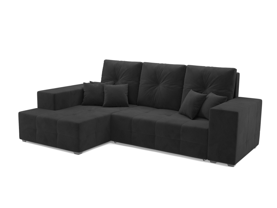 Угловой диван Лаваль левый угол, велюр (Черный)