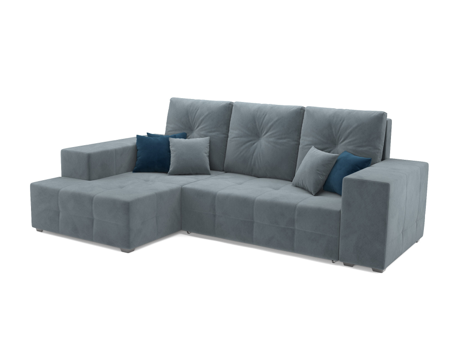 Угловой диван Лаваль левый угол, велюр (серо-синий)