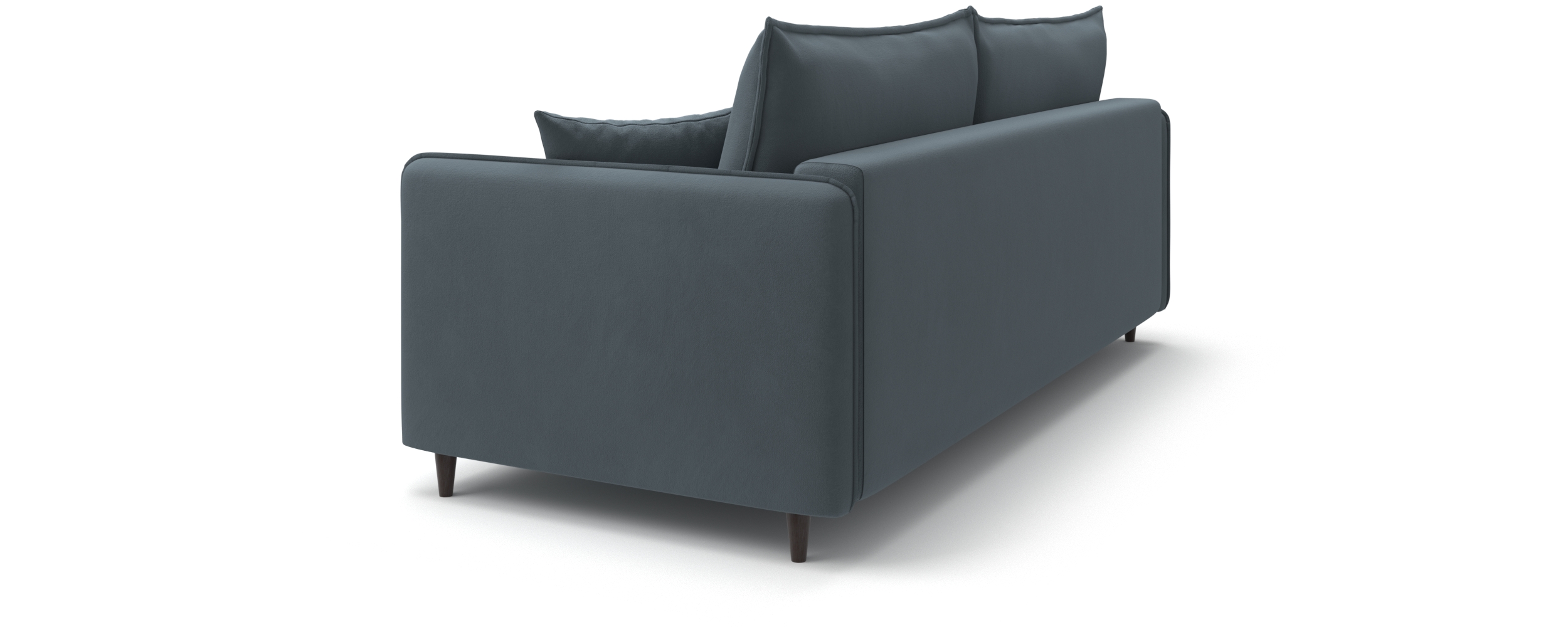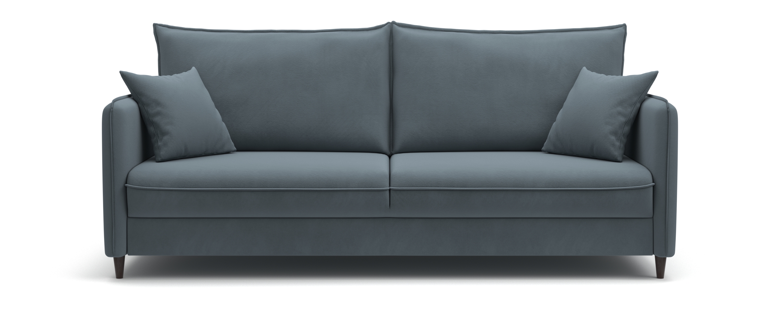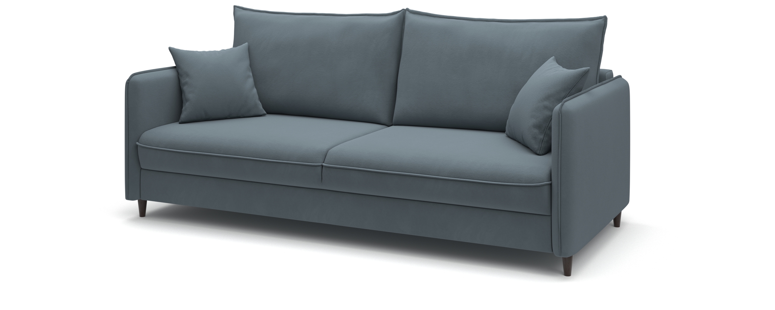 Диван-кровать «Фьорд» сочетает в себе функциональность и лаконичный внешний вид. В его дизайне присутствуют все основные элементы, свойственные скандинавскому стилю: тонкие подлокотники и мягкие подушки с отделкой модным «французским швом»; пара дополнительных миниатюрных подушек для украшения интерьера; декоративные складки в местах скругления подлокотника и сидения.