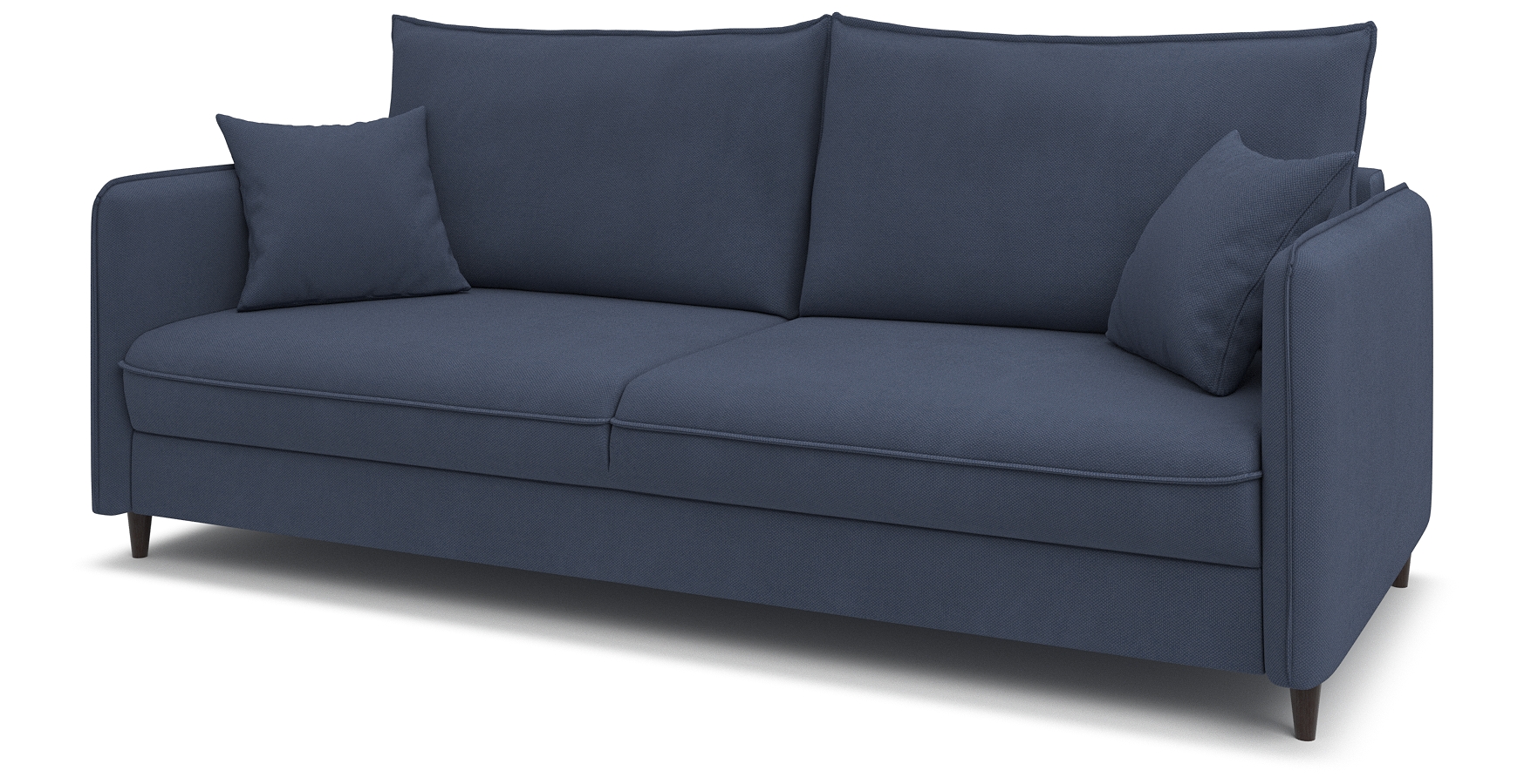 Диван-кровать «Фьорд» сочетает в себе функциональность и лаконичный внешний вид. В его дизайне присутствуют все основные элементы, свойственные скандинавскому стилю: тонкие подлокотники и мягкие подушки с отделкой модным «французским швом»; пара дополнительных миниатюрных подушек для украшения интерьера; декоративные складки в местах скругления подлокотника и сидения.
