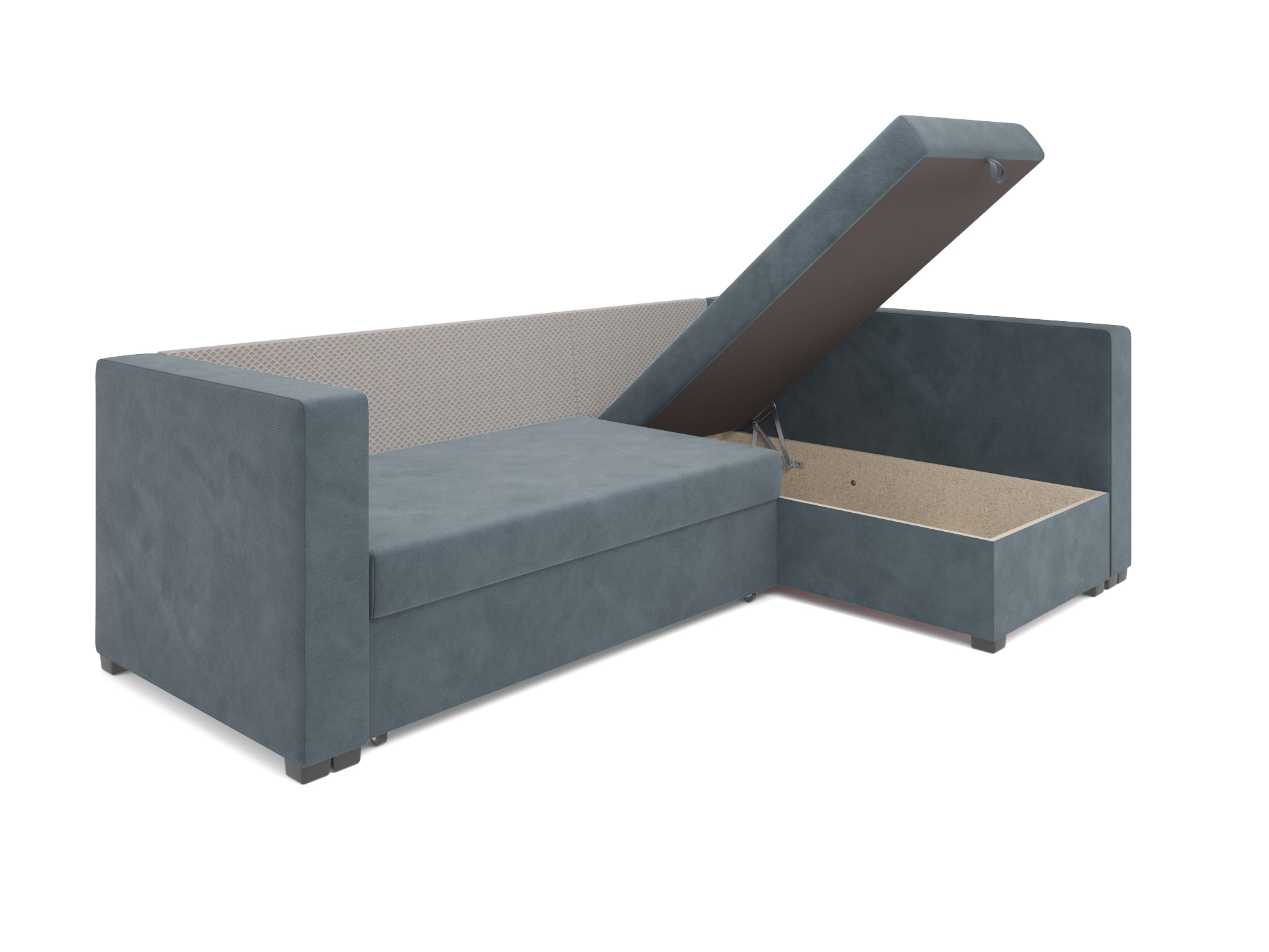 Наличие бельевого ящика обеспечивает дополнительное место для хранения вещей под сиденьем углового дивана.