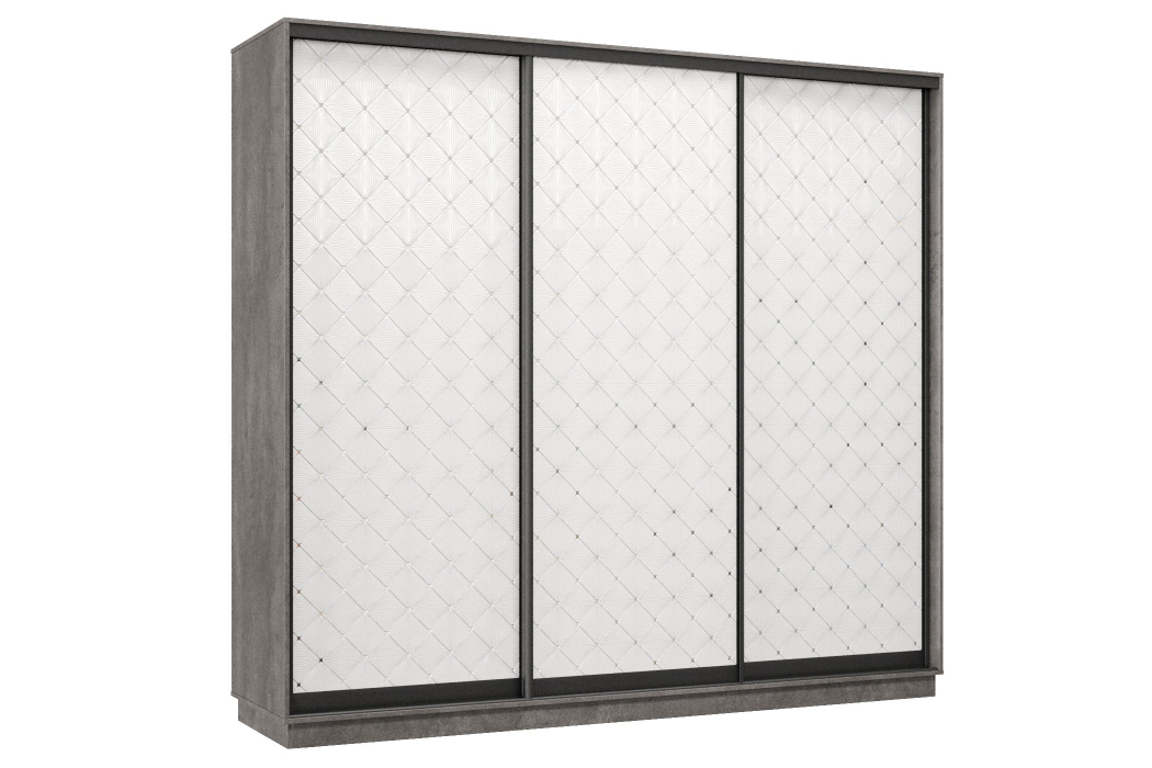 Отзывы о Столплит Шкаф-купе Премьер 36 (01РБ;01РБ;01РБ) фасады ромб белый/трёхдверный/Профиль чёрный муар Бетон