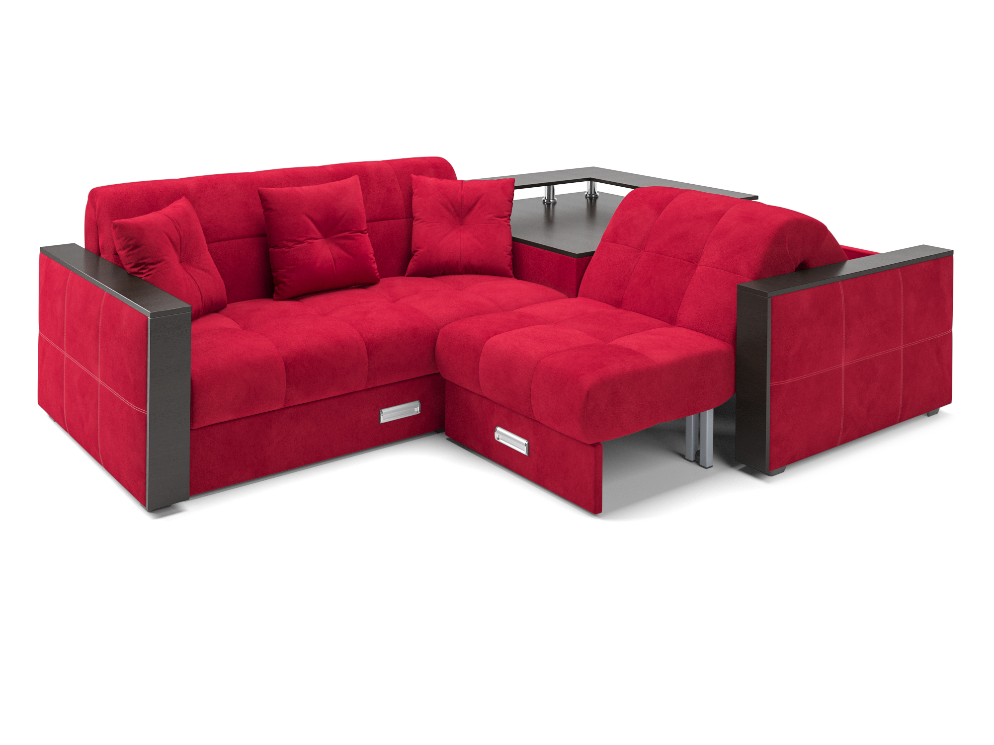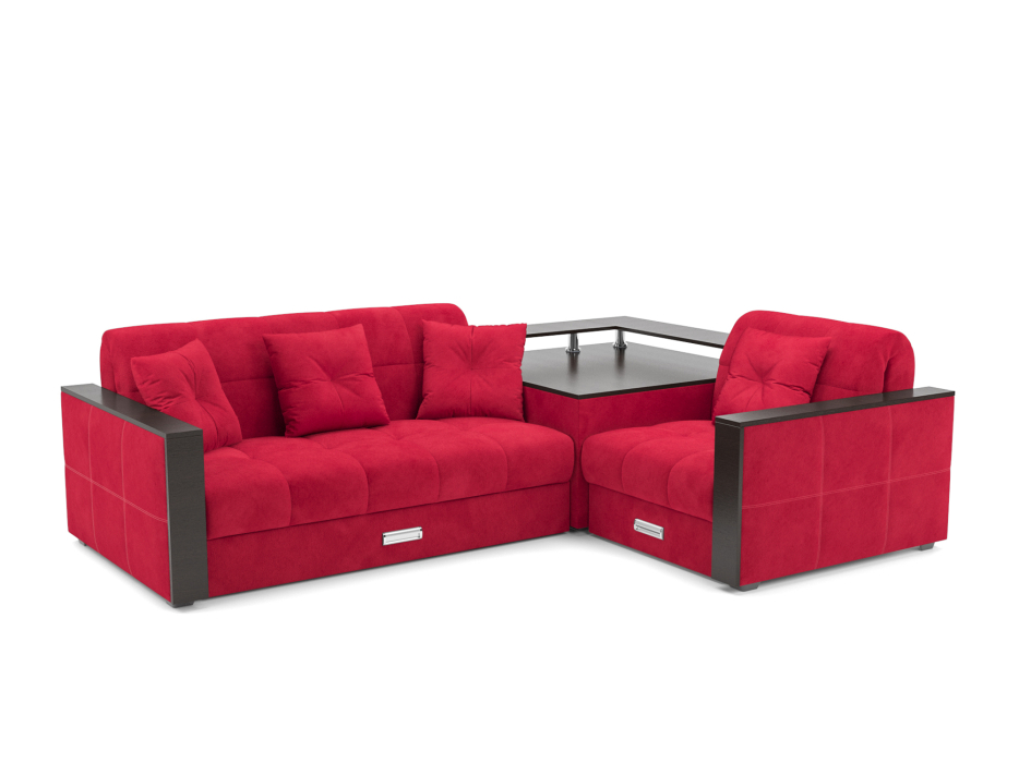 На столик-бар в угловой части дивана можно поставить вазу с цветами или расставить напитки для друзей и наслаждаться просмотром фильма, не отвлекаясь на лишние движения.