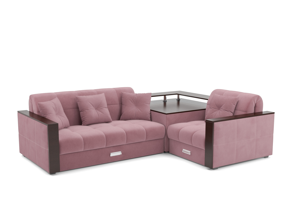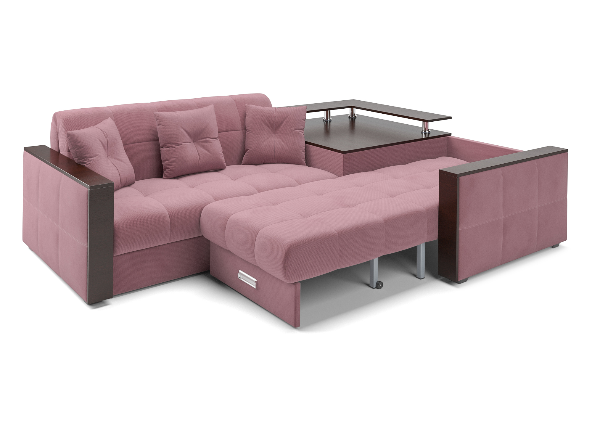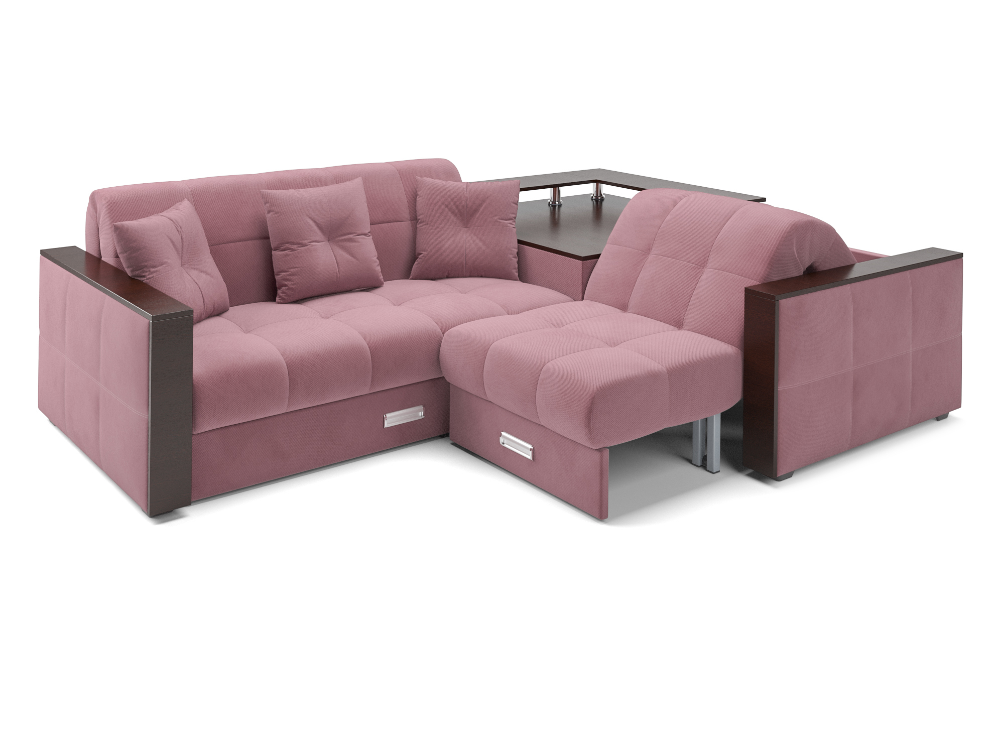 На столик-бар в угловой части дивана можно поставить вазу с цветами или расставить напитки для друзей и наслаждаться просмотром фильма, не отвлекаясь на лишние движения.
