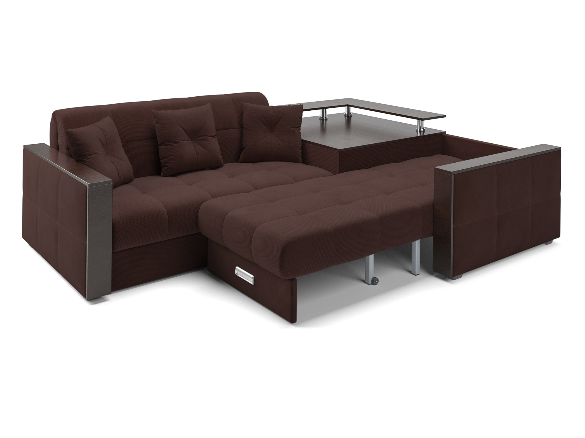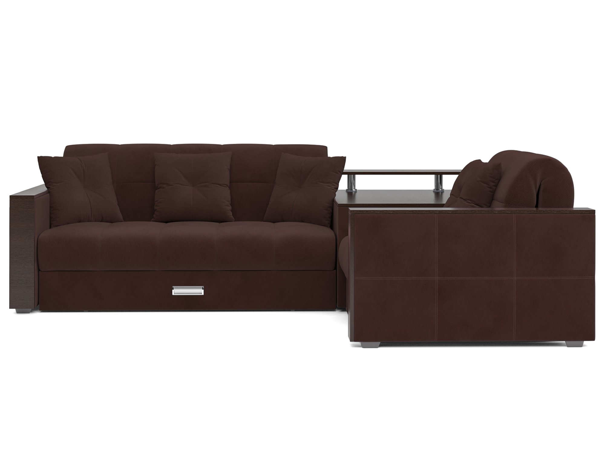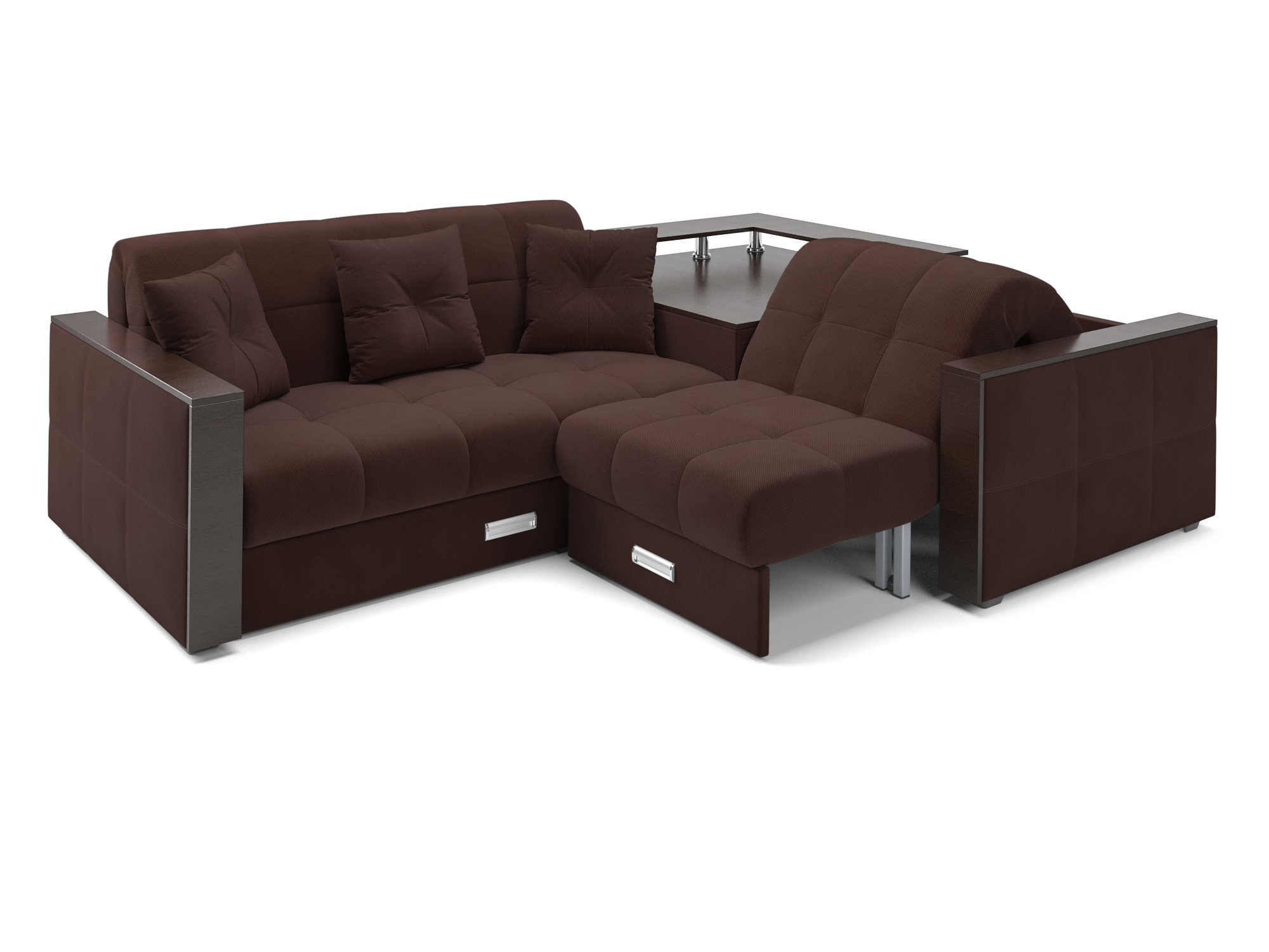 На столик-бар в угловой части дивана можно поставить вазу с цветами или расставить напитки для друзей и наслаждаться просмотром фильма, не отвлекаясь на лишние движения.