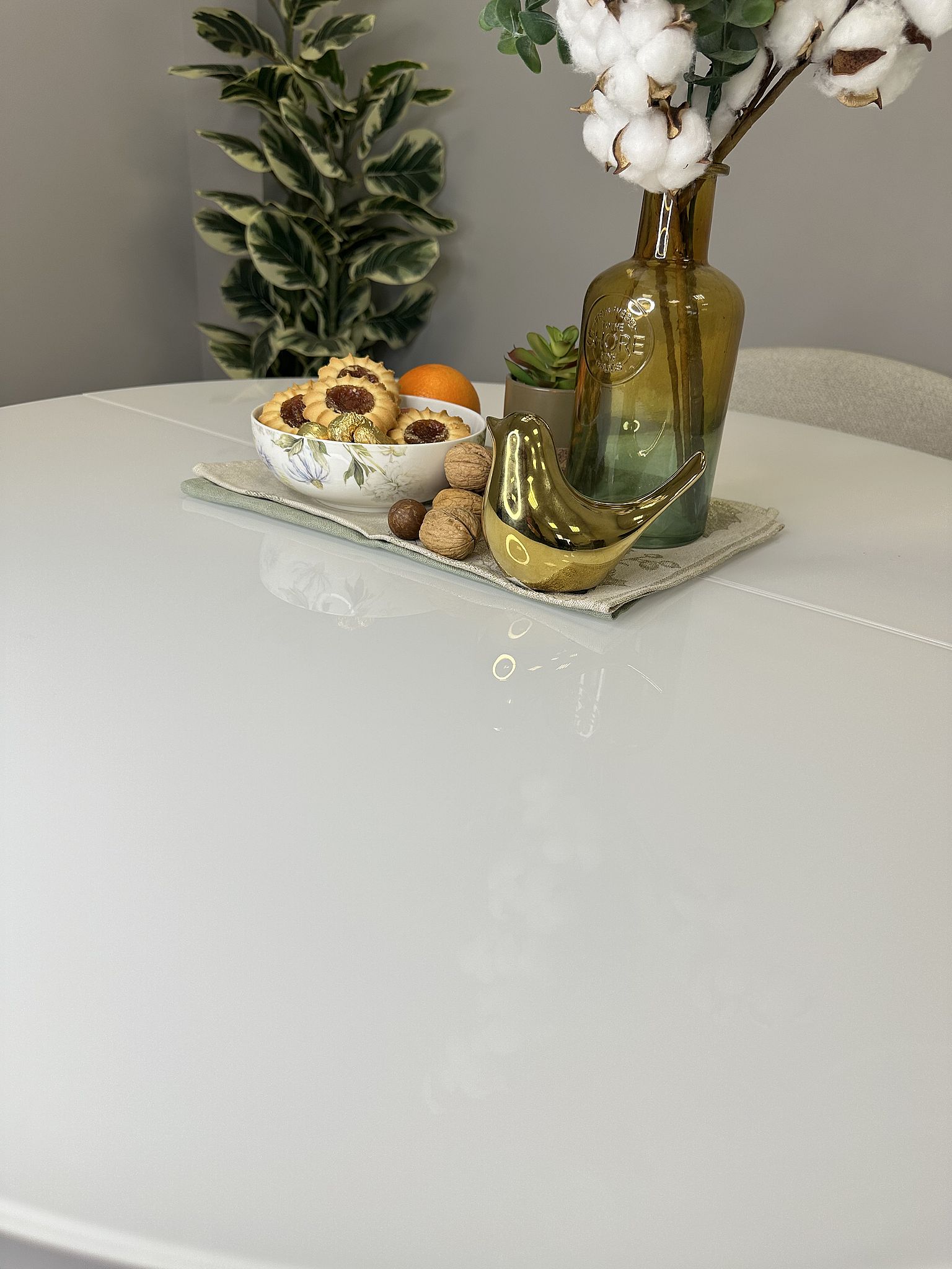 Компактный и очень функциональный стол, идеален для использования как на небольшой кухне, так и в качестве уютной обеденной зоны в гостиной. Столешница из стекла надежно защищает стол от влаги и горячего. Синхронный механизм раскладки позволяет легко раздвинуть стол одной рукой любому члену семьи. Вставка с материалом столешницы оставляет стол монолитным в разложенном состоянии. Стол максимально устойчив благодаря особому, усиленному креплению опор и регулировочным винтам.