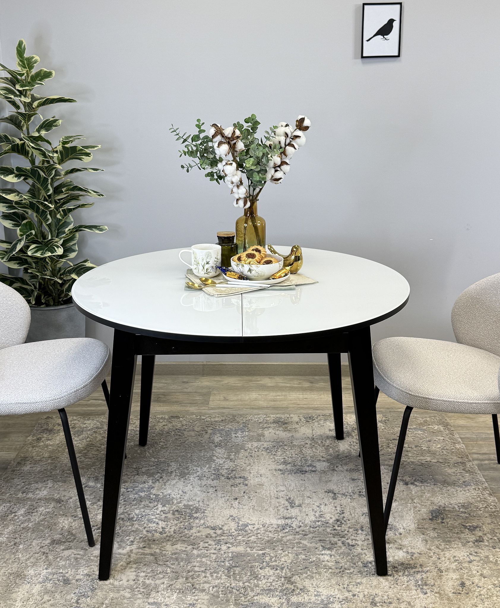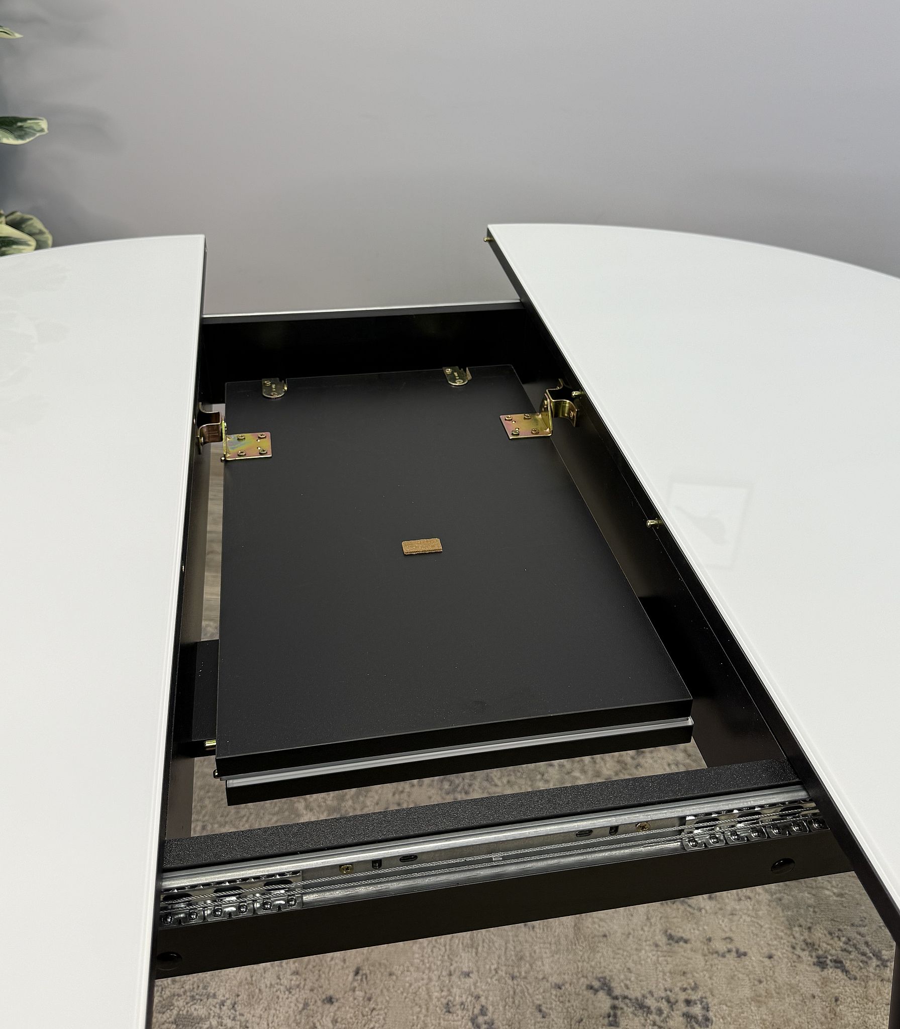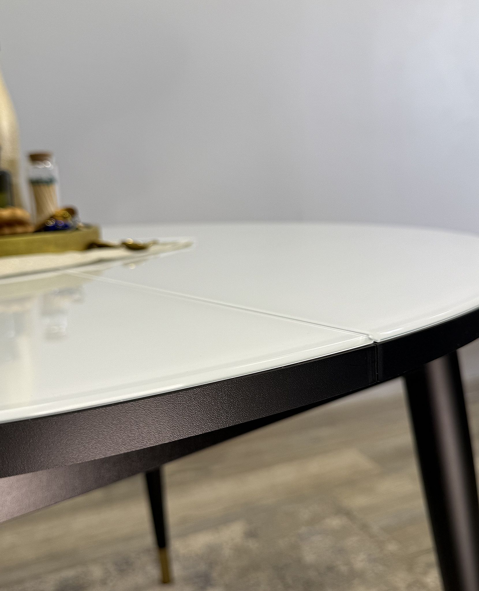 Компактный и очень функциональный стол, идеален для использования как на небольшой кухне, так и в качестве уютной обеденной зоны в гостиной. Столешница из стекла надежно защищает стол от влаги и горячего. Синхронный механизм раскладки позволяет легко раздвинуть стол одной рукой любому члену семьи. Вставка с материалом столешницы оставляет стол монолитным в разложенном состоянии. Стол максимально устойчив благодаря особому, усиленному креплению опор и регулировочным винтам.