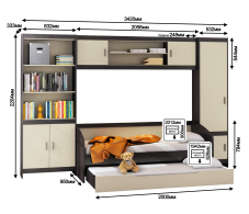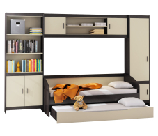 Это идеальное решения для детской в целях экономии места. Встает в одну стену. Дизайн и цвета отличные. Функциональность здоровская. Можно не только вещи хранить, но и декор разный. Ящик выдвижной у нас под хранение пастельного белья. Качество мебели очень хорошее, прослужит не один год. Цена приемлемая. Доставка и сборка была в указанные сроки. Рекомендуем этот сайт всем друзьям теперь.
