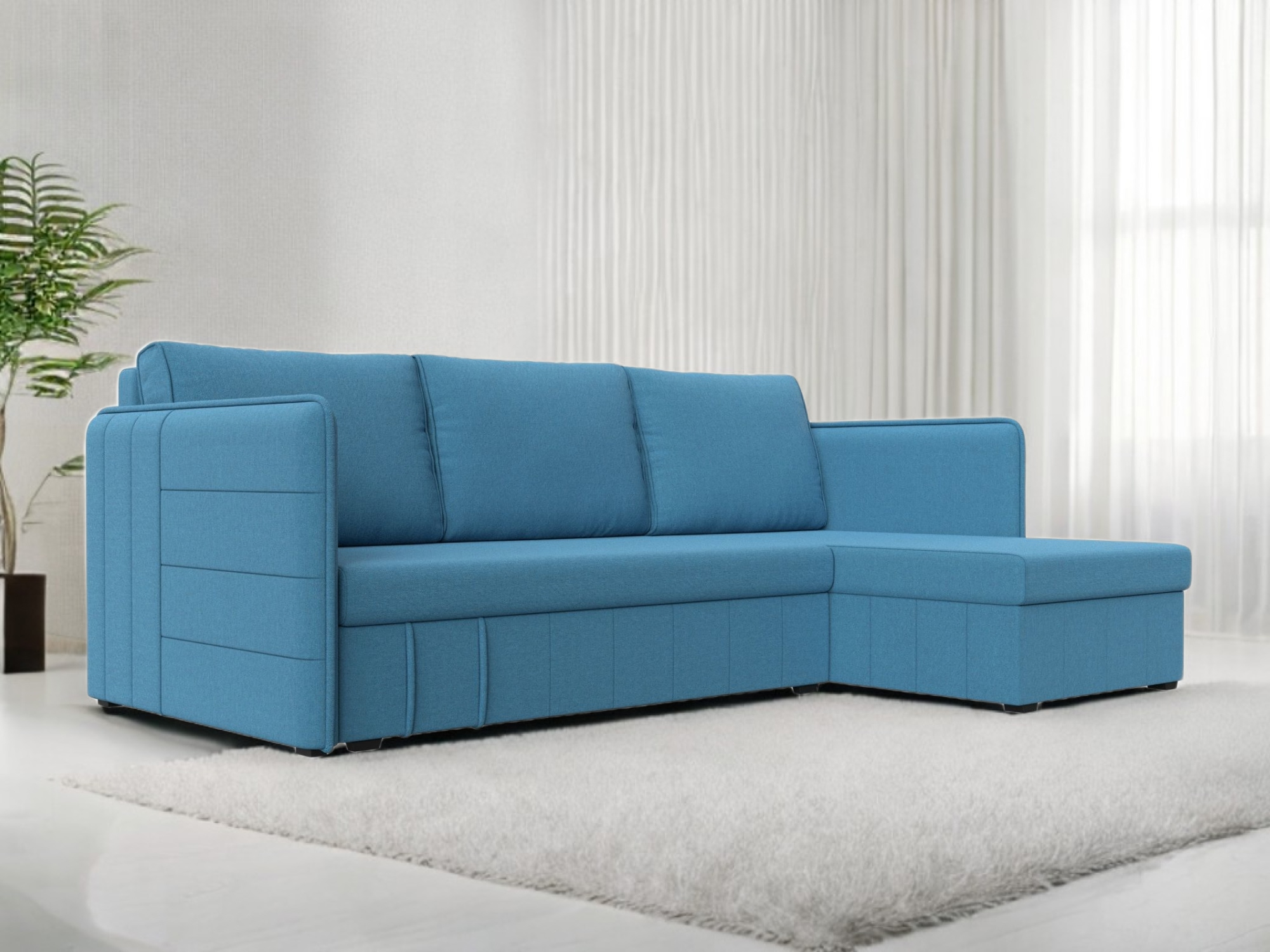 Угловой диван Слим представляет собой бюджетный вариант современного раскладного дивана-кровати с интересным дизайном и прочным каркасом из ДСП, ЛДСП, фанеры и бруса. Три большие мягкие съемные подушки дополняют спинку изделия, а прямые мягкие подлокотники обеспечат удобство и комфорт. Под сиденьем расположены вместительные ящики для белья. Устойчивость и надежность конструкции обеспечивают пластиковые крепкие ножки. Угловой диван Слим прекрасно впишется в интерьер как жилой комнаты, так и офиса. В качестве варианта для сна модель «Слим» тоже отлично подойдет. При раскладывании длина автоматически станет шириной, что позволит свободно лечь двоим. Широкий выбор расцветок позволяет подобрать оптимальный вариант под стилистику помещения.