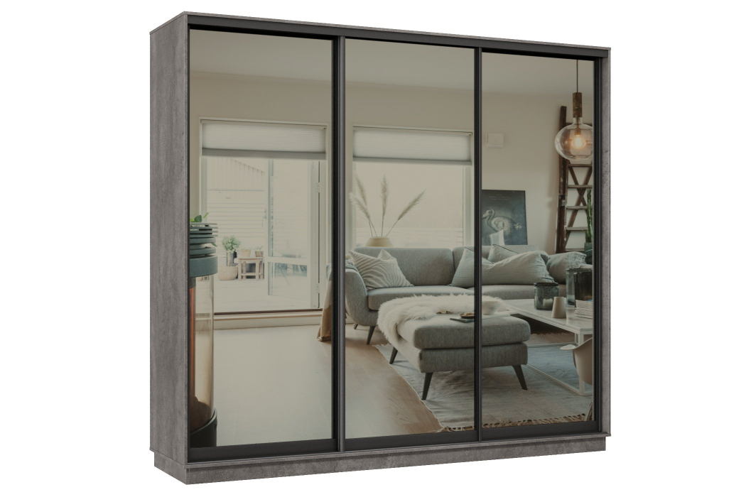 Отзывы о Столплит Шкаф-купе Премьер 60 (01ЗГ;01ЗГ;01ЗГ) фасады зеркало графит/трёхдверный/Профиль чёрный муар Бетон