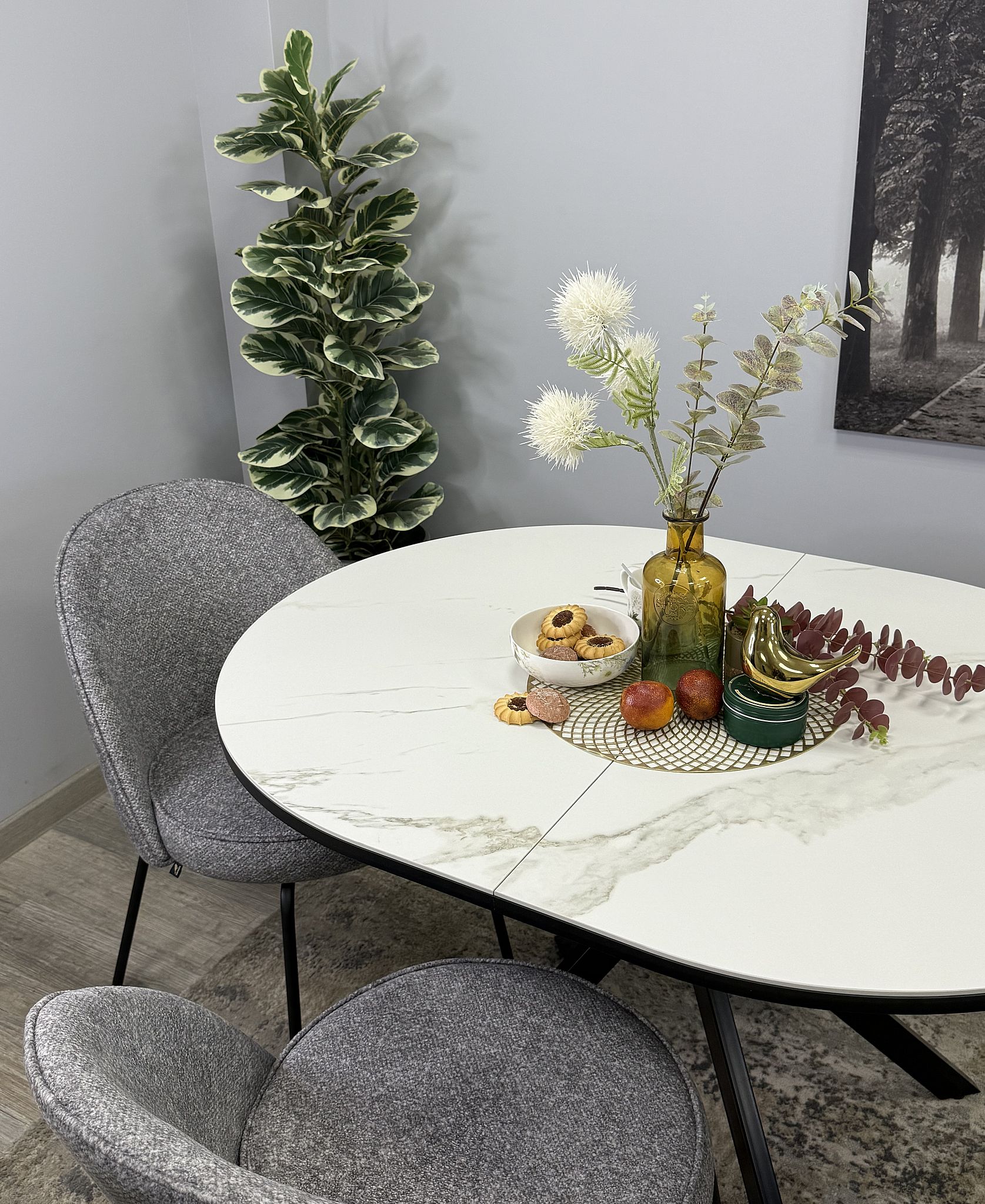 Стол с овальной столешницей, тонкими, но надежными опорами и самой удобной системой раздвижения, из всех которые мы делали до сих пор. Овальная столешница размером 1100*900 оптимальна на большой кухне. Можно ставить вплотную к стене, легко размещается 6 чел в сложенном виде.
