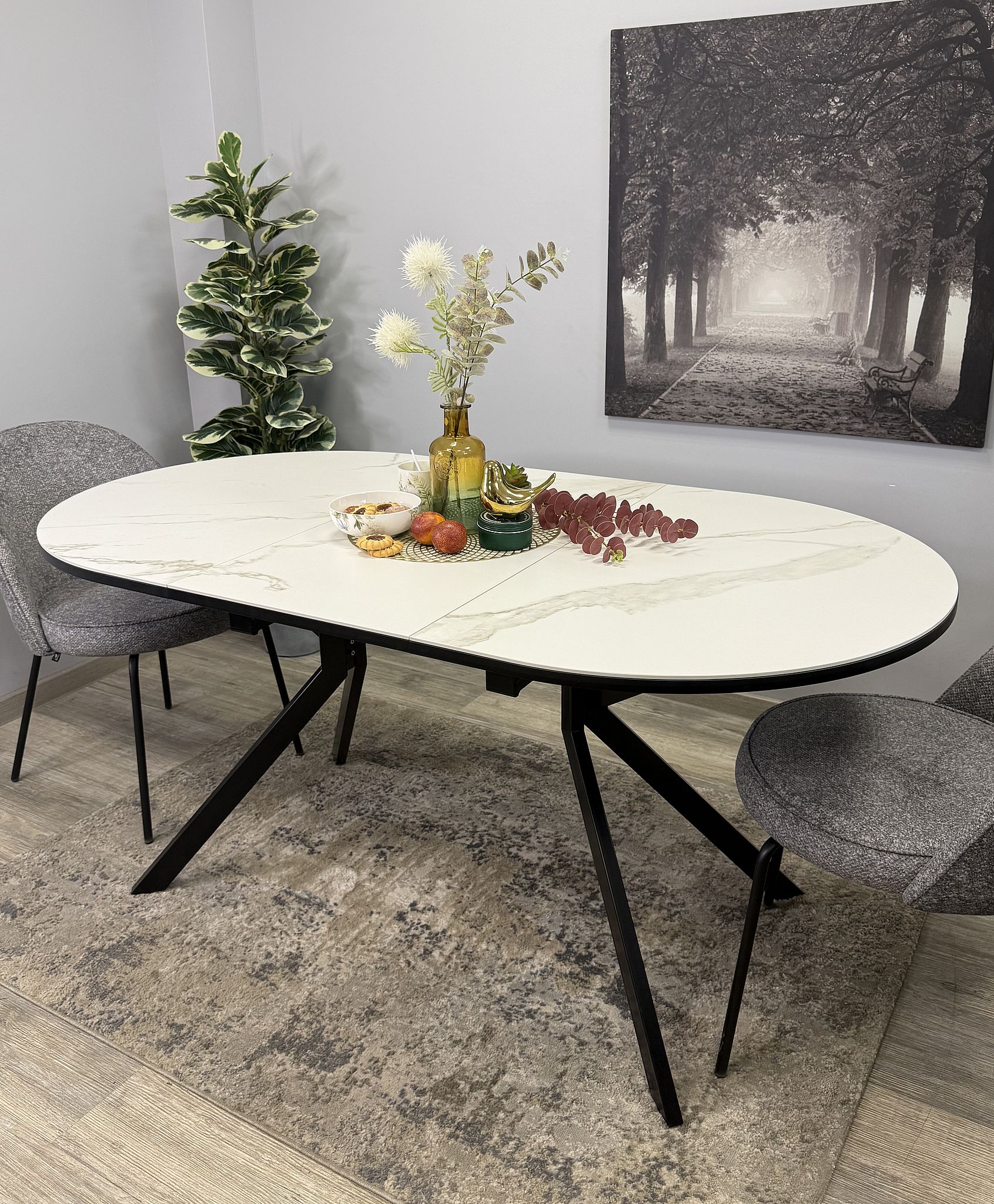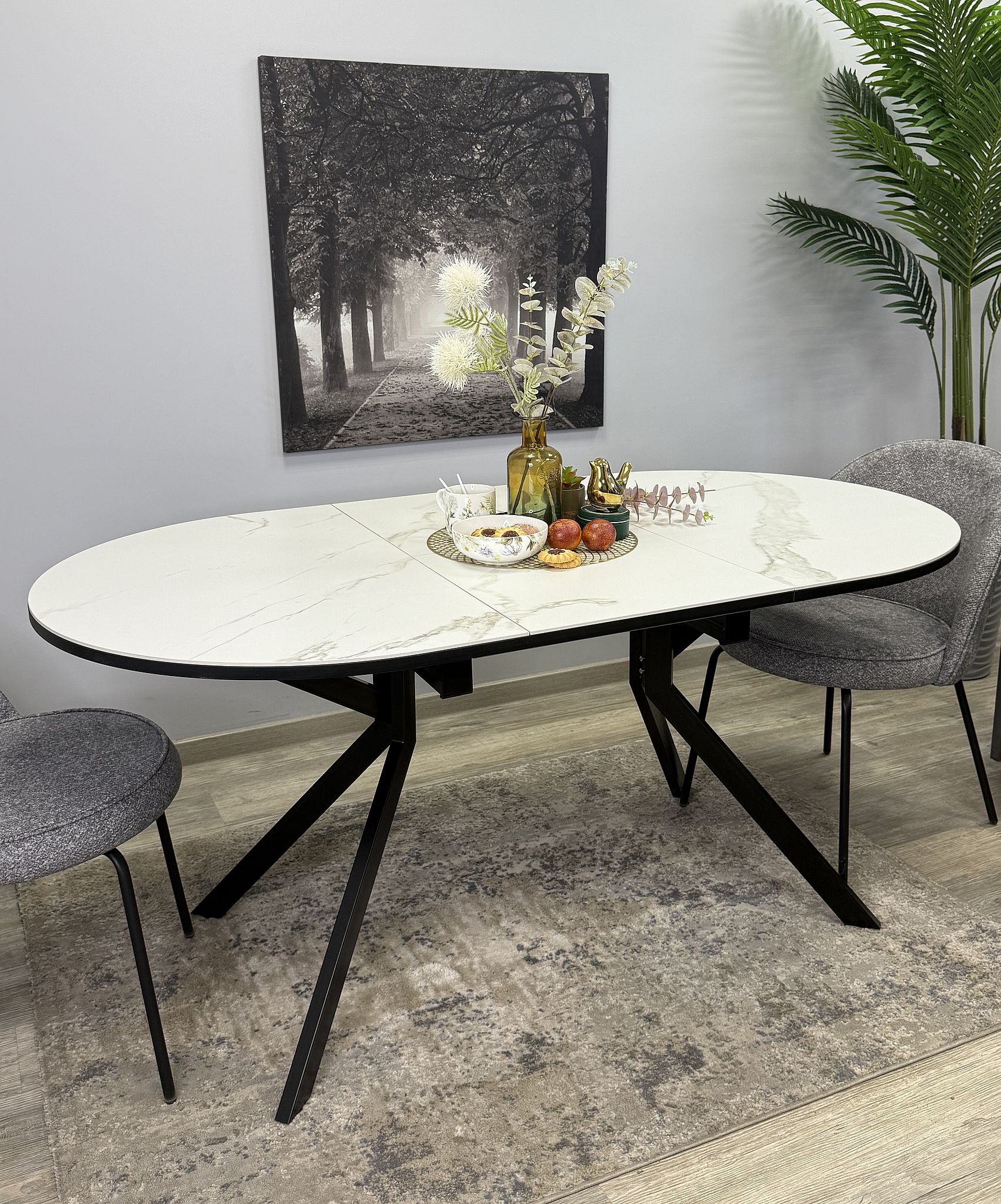 Вставка стола KENNER DO1100 имеет тип "бабочка" и увеличивает длину стола на 450 мм, что позволяет комфортно разместить больше гостей при необходимости. Вставка также выполнена из керамики на подложке из ЛДСП, гарантируя соответствие ее качеству столешницы.