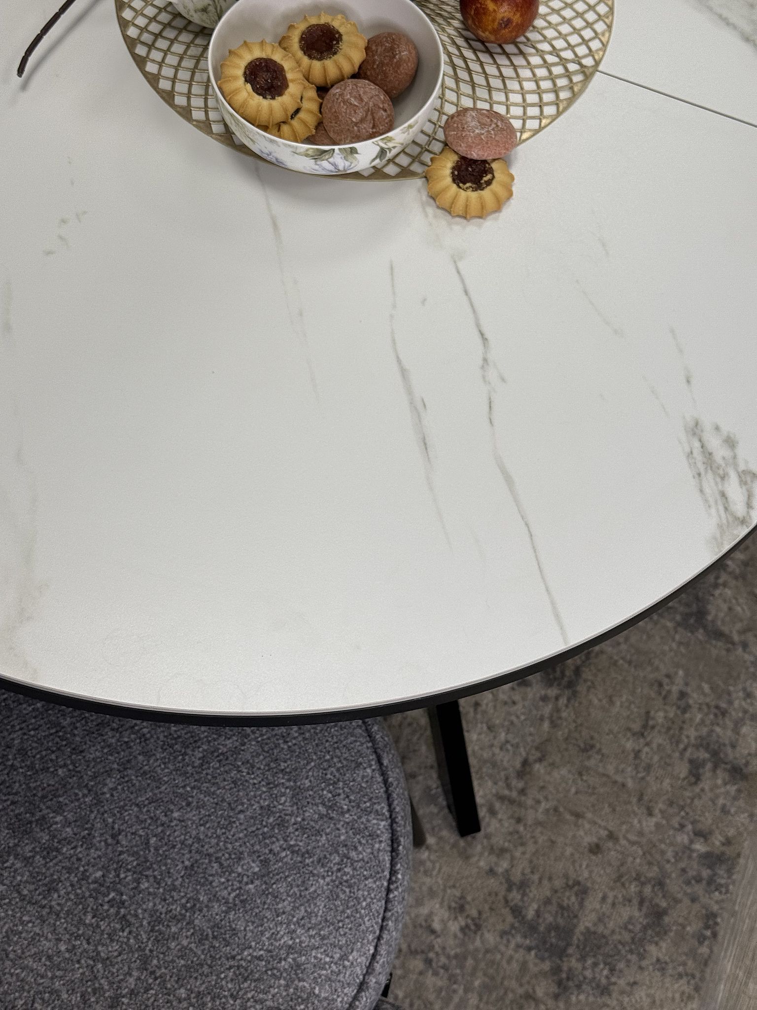 Преимущество 1. Столешница красивой овальной формы с большими прямыми участками по широкой стороне, можно ставить к стене.