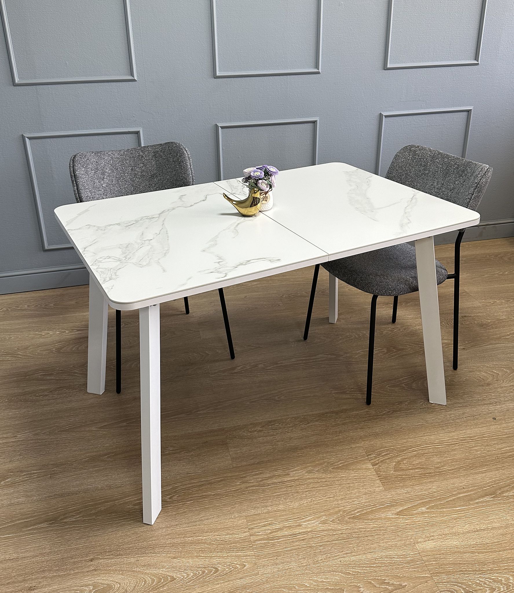 Очень функциональный и удобный стол на надежном металлическом основании. Столешница с травмобезопасными, скругленными краями, металлическая рама, которая полностью прячется под столешницей и оставляем максимальное место для ног, надежные и устойчивые "П" - образные опоры из стального профиля размером 60*30мм, которые расположены таким образом, что позволяют поставить 2 больших стула по широкой стороне стола и 1 широкий стул по узкой стороне стола. Оптимальный выбор для современной кухни. Стол продуман для удобного ежедневного использования. За ним удобно и свободно сидеть, ничего не мешается, все раскладывается четко и легко.