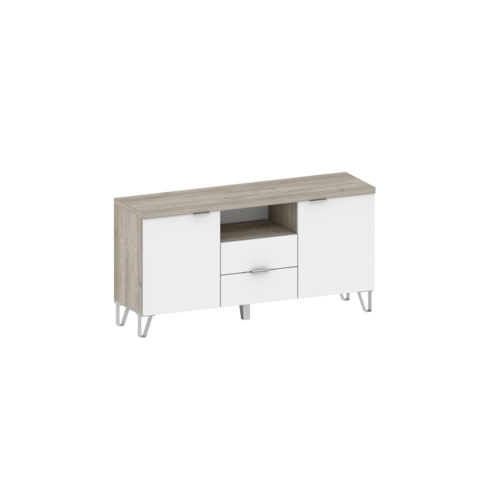 Прямая тумба имеет две двери (две глухих), два выдвижных ящика с использованием механизма полного выдвижения и плавного закрывания, дно ящика выполнено из ЛДВП в цвет корпуса
