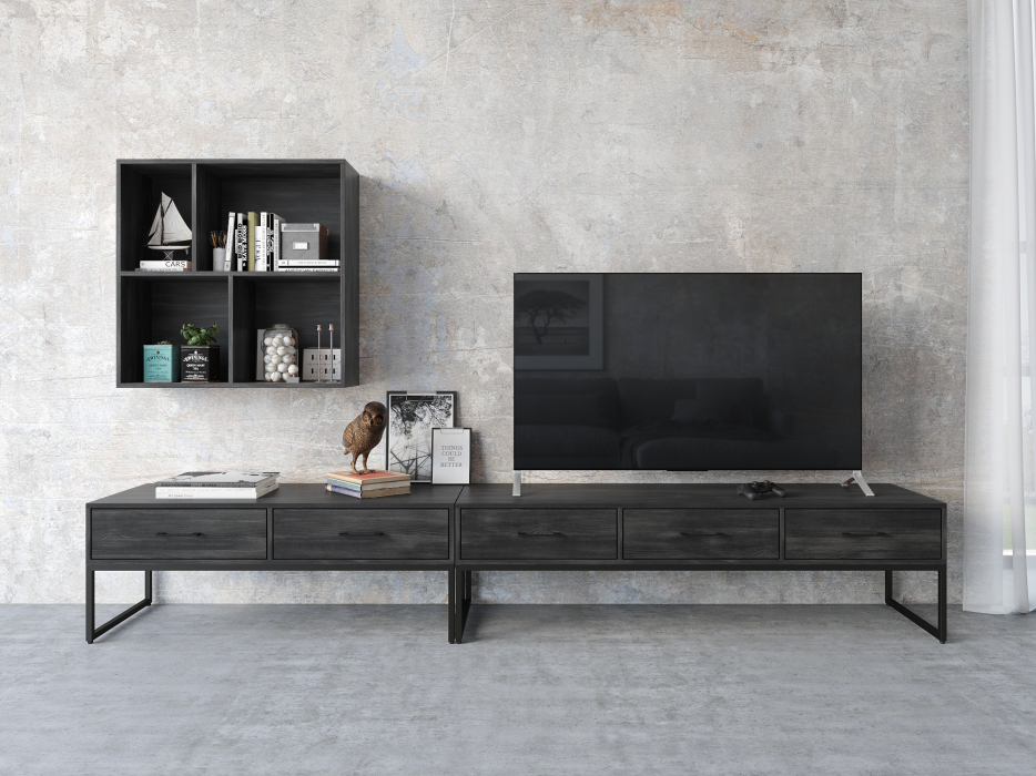 Стенка в гостиную Айсберг Лофт 01 Черный (Северное дерево темное)