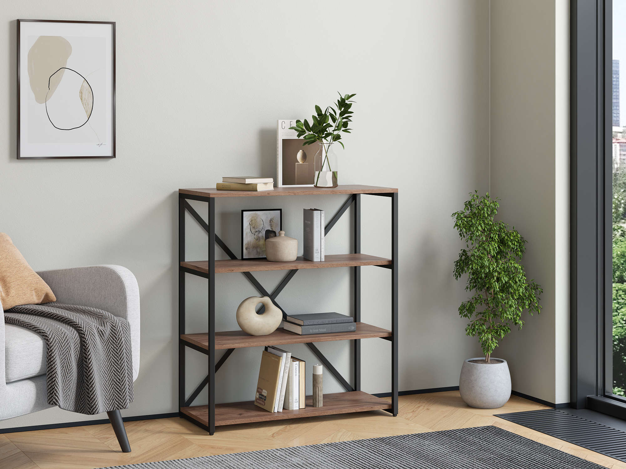 Стеллаж Айсберг Лофт 80/4 Черный (Дуб/крафт/табак)