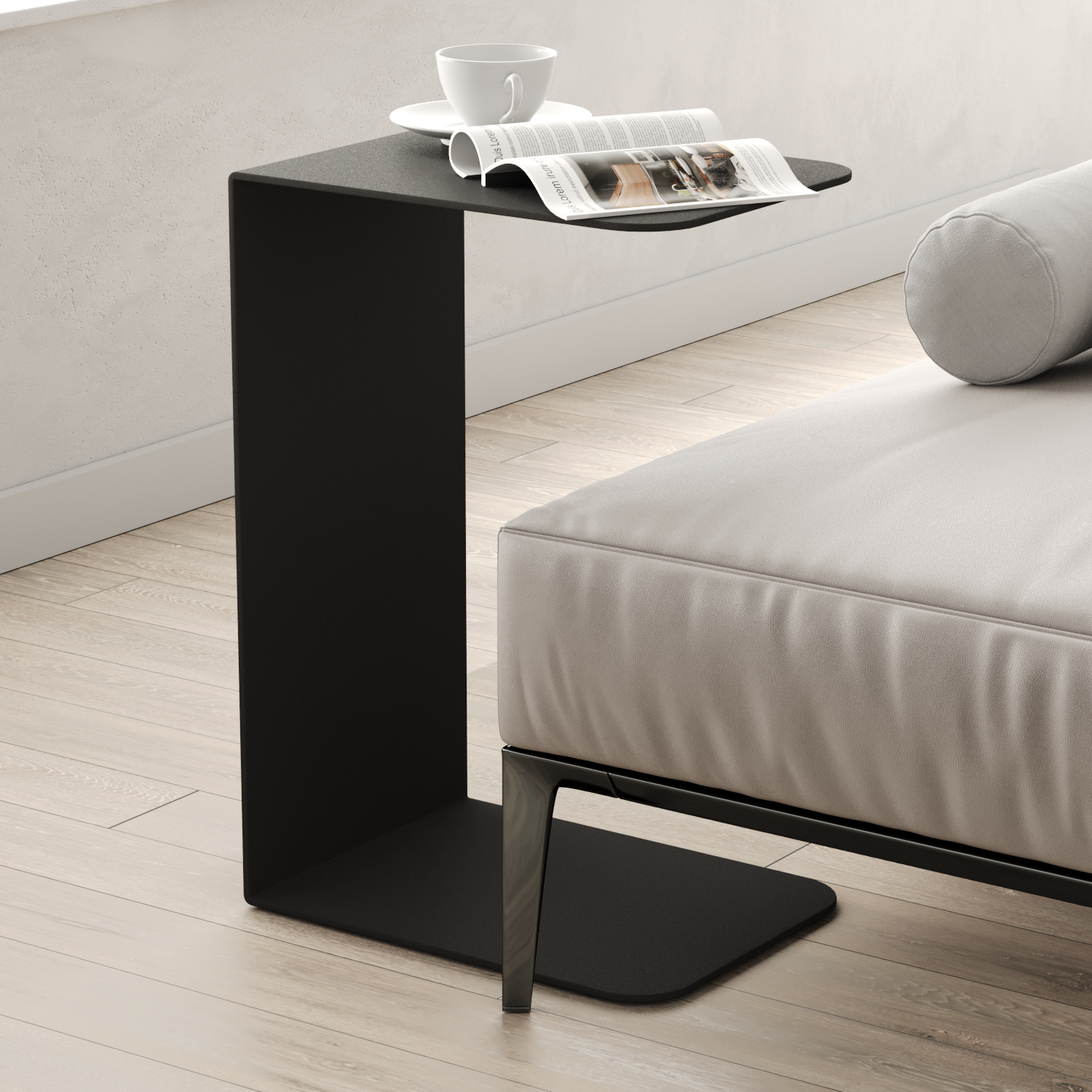 Дизайнерский придиванный полуовальный столик RILONI. Изготовлен полностью из металла 6мм. Небольшие размеры и лаконичный дизайн позволят разместить его в любом уголке вашего дома. Столешница 45(Г)*30(Ш) см, нижняя платформа 45(Г)*30(Ш) см. Вы можете использовать его как маленький столик к дивану для завтрака, или как прикроватную тумбу возле кровати для книг и других мелочей.