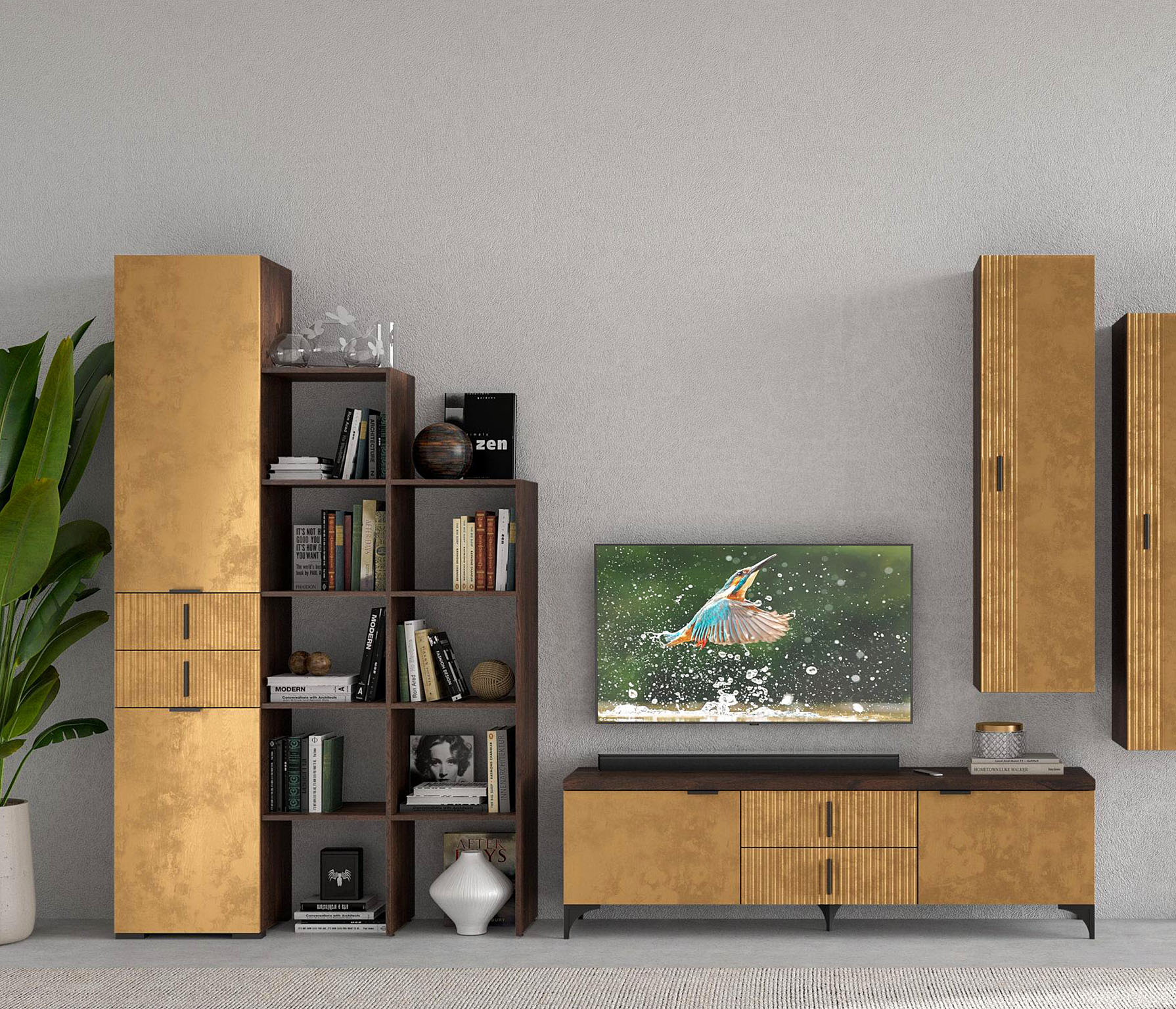 Нежность и насыщенность — такое сочетание вызывает гостиная Шер. Модули смотрятся объемно со множеством приятных деталей. Роскошные по цветовой палитре материалы, в сочетании с естественными древесными текстурами придают вашему дому атмосферу спокойствия, манящего уюта и безмятежного настроения.