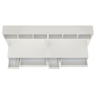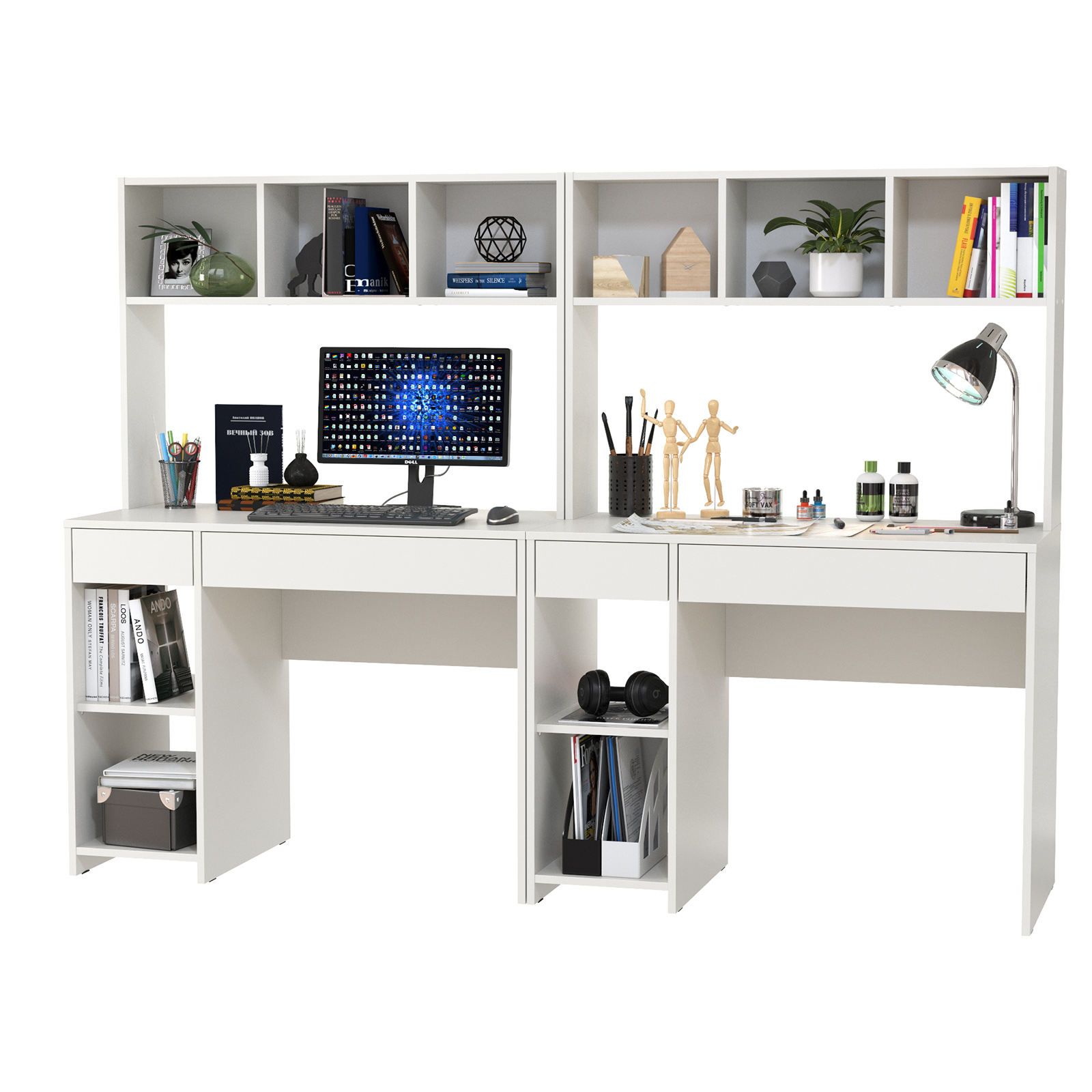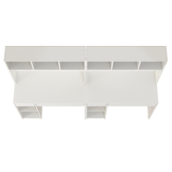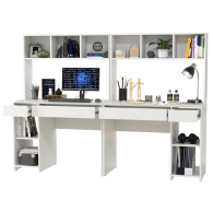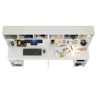 Удобная, устойчивая конструкция располагает большими столешницами и вместительной системой хранения для двоих деток. Система хранения каждого стола разнообразна - это надстройка с открытыми нишами, открытая тумба со съёмной полкой и два выдвижных ящика стола. Защитная ниша надстройки вполне достаточна для установки монитора любого размера, а тумба подойдёт для установки системного блока. Нарядный стол компьютерный Комфорт 12.77F с множество открытых ниш, визуально лёгкий, привлекает эргономичностью и стильным дизайном. Стол компьютерный для двоих детей Комфорт 12.77F собираются на любую сторону - при сборке Вы можете расположить тумбу как слева, так и справа.