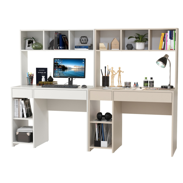 Удобная, устойчивая конструкция располагает большими столешницами и вместительной системой хранения для двоих деток. Система хранения каждого стола разнообразна - это надстройка с открытыми нишами, открытая тумба со съёмной полкой и два выдвижных ящика стола. Защитная ниша надстройки вполне достаточна для установки монитора любого размера, а тумба подойдёт для установки системного блока. Нарядный стол компьютерный Комфорт 12.77F с множество открытых ниш, визуально лёгкий, привлекает эргономичностью и стильным дизайном. Стол компьютерный для двоих детей Комфорт 12.77F собираются на любую сторону - при сборке Вы можете расположить тумбу как слева, так и справа.