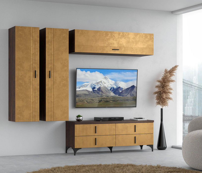 Нежность и насыщенность — такое сочетание вызывает гостиная Шер. Модули смотрятся объемно со множеством приятных деталей. Роскошные по цветовой палитре материалы, в сочетании с естественными древесными текстурами придают вашему дому атмосферу спокойствия, манящего уюта и безмятежного настроения.