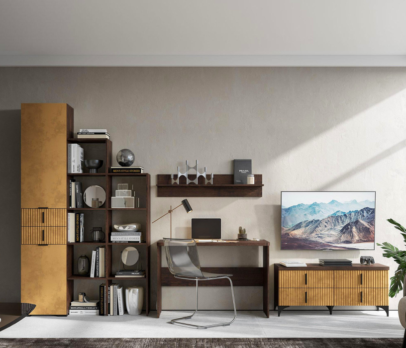 Нежность и насыщенность — такое сочетание вызывает гостиная Шер. Модули смотрятся объемно со множеством приятных деталей. Роскошные по цветовой палитре материалы, в сочетании с естественными древесными текстурами придают вашему дому атмосферу спокойствия, манящего уюта и безмятежного настроения.