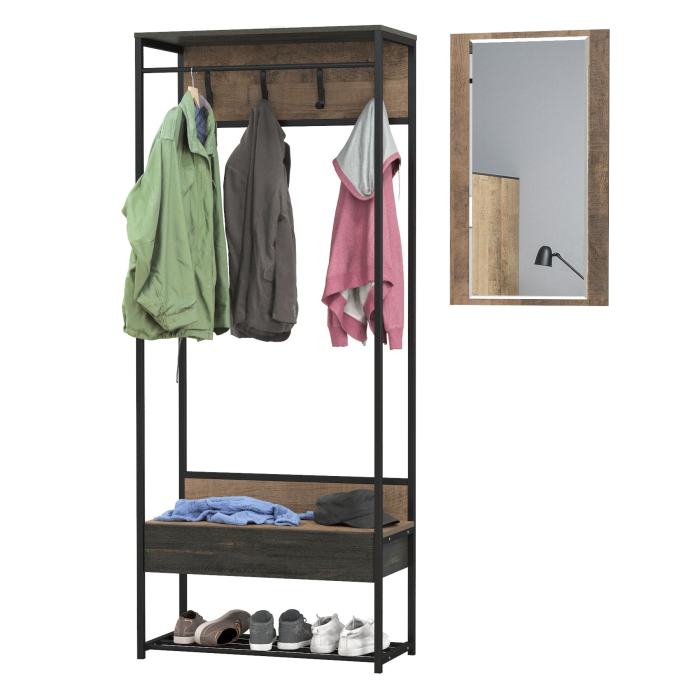Прихожая открытая с зеркалом Трувор - современная и практичная мебель в индустриальном стиле лофт.